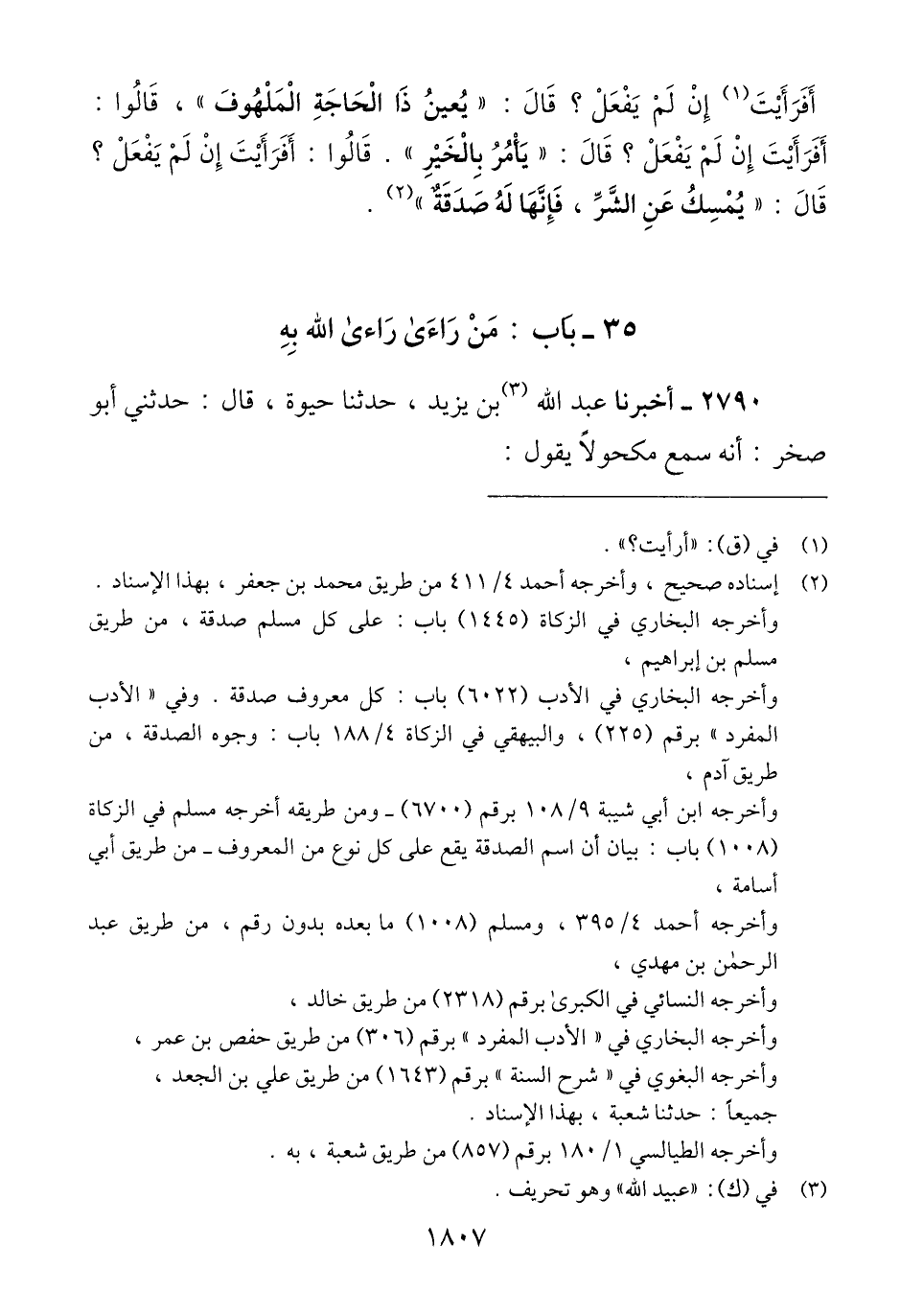 2790 - أَخْبَرَنَا عَبْدُ اللَّهِ بْنُ يَزِيدَ، حَدَّثَنَا حَيْوَةُ، قَالَ: حَدَّثَنِي أَبُو صَخْرٍ: أَنَّهُ سَمِعَ مَكْحُولًا، يَقُولُ: -[1808]- حَدَّثَنِي أَبُو هِنْدٍ الدَّارِيُّ، أَنَّهُ سَمِعَ رَسُولَ اللَّهِ صَلَّى اللهُ عَلَيْهِ وَسَلَّمَ يَقُولُ: «§مَنْ قَامَ مَقَامَ رِيَاءٍ وَسُمْعَةٍ، رَاءَى اللَّهُ بِهِ يَوْمَ الْقِيَامَةِ وَسَمَّعَ» Qإسناده صحيح