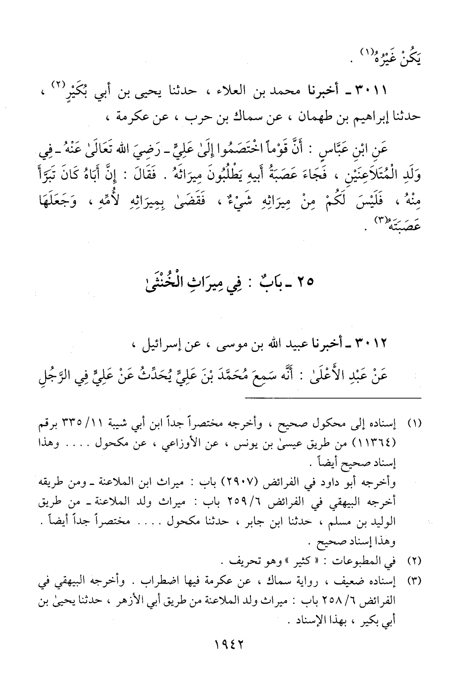 3012 - أَخْبَرَنَا عُبَيْدُ اللَّهِ بْنُ مُوسَى، عَنْ إِسْرَائِيلَ، عَنْ عَبْدِ الْأَعْلَى، أَنَّهُ سَمِعَ مُحَمَّدَ بْنَ عَلِيٍّ، يُحَدِّثُ، عَنْ عَلِيٍّ، §فِي الرَّجُلِ -[1943]- يَكُونُ لَهُ مَا لِلرَّجُلِ وَمَا لِلْمَرْأَةِ مِنْ أَيِّهِمَا يُوَرَّثُ؟ فَقَالَ: «مِنْ أَيِّهِمَا بَالَ» Qرجاله ثقات غير أنه منقطع (بين محمد بن علي بن الحسين وعلي بن أبي طالب)