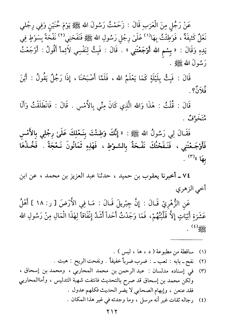 74 - أَخْبَرَنَا يَعْقُوبُ بْنُ حُمَيْدٍ، حَدَّثَنَا عَبْدُ الْعَزِيزِ بْنُ مُحَمَّدٍ، عَنِ ابْنِ أَخِي الزُّهْرِيِّ، عَنِ الزُّهْرِيِّ قَالَ إِنَّ جِبْرِيلَ قَالَ: «§مَا فِي الْأَرْضِ أَهْلُ عَشَرَةِ أَبْيَاتٍ إِلَّا قَلَّبْتُهُمْ، فَمَا وَجَدْتُ أَحَدًا أَشَدَّ إِنْفَاقًا لِهَذَا الْمَالِ مِنْ رَسُولِ اللَّهِ صَلَّى اللهُ عَلَيْهِ وَسَلَّمَ» Qرجاله ثقات غير أنه مرسل