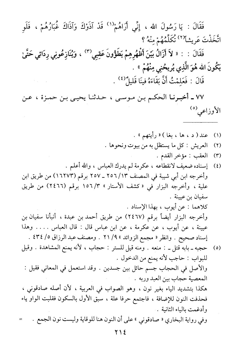 77 - أَخْبَرَنَا الْحَكَمُ بْنُ مُوسَى، حَدَّثَنَا يَحْيَى بْنُ حَمْزَةَ، عَنِ الْأَوْزَاعِيِّ -[215]- عَنْ دَاوُدَ بْنِ عَلِيٍّ، قَالَ: قِيلَ: يَا رَسُولَ اللَّهِ أَلَا نَحْجُبُكَ؟ فَقَالَ: «§لَا دَعُوهُمْ يَطَؤُونَ عَقِبِي وَأَطَأُ أَعْقَابَهُمْ حَتَّى يُرِيحَنِي اللَّهُ مِنْهُمْ» Qإسناده معضل