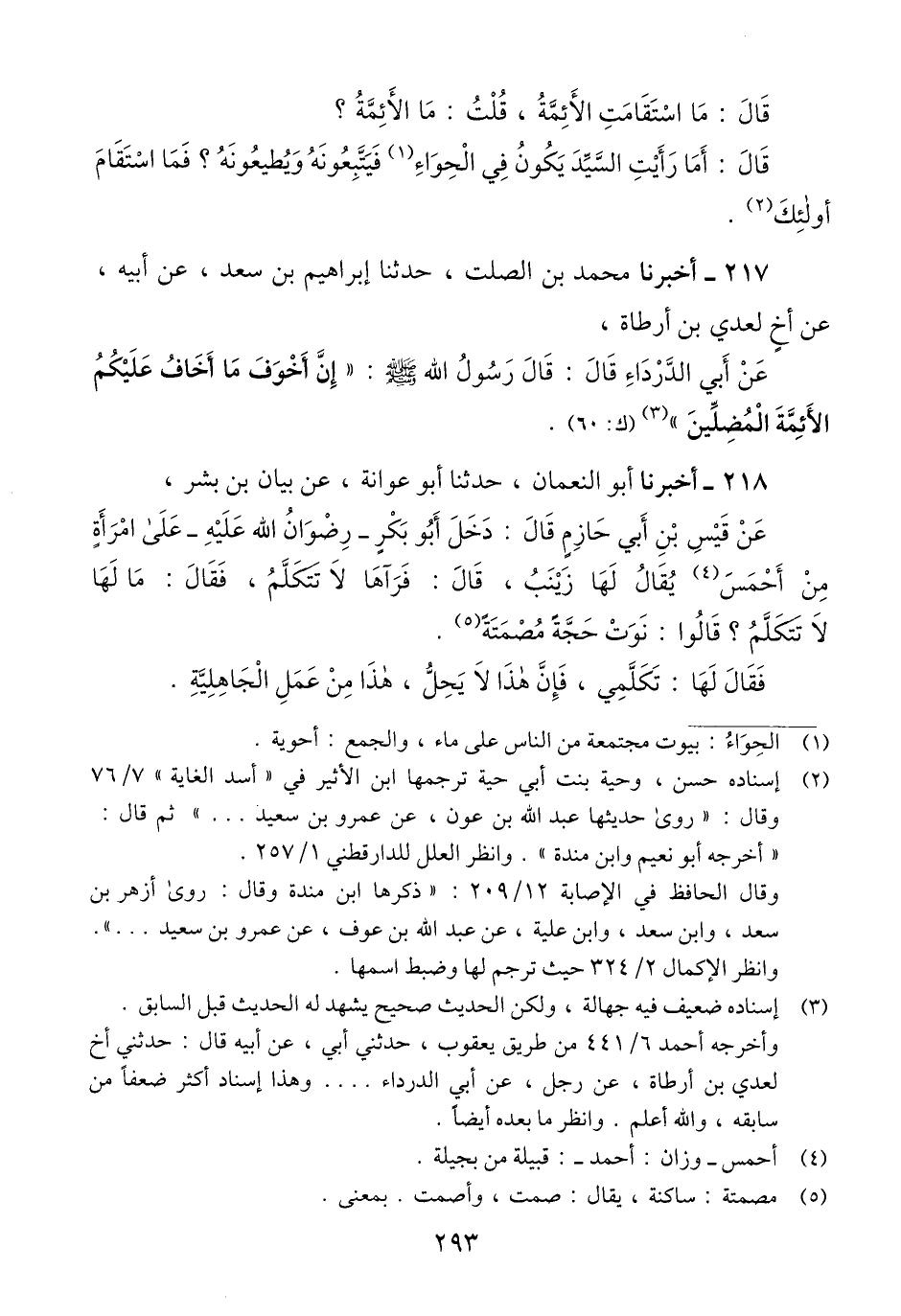 217 - أَخْبَرَنَا مُحَمَّدُ بْنُ الصَّلْتِ، حَدَّثَنَا إِبْرَاهِيمُ بْنُ سَعْدٍ، عَنْ أَبِيهِ، عَنْ أَخٍ لِعَدِيِّ بْنِ أَرْطَاةَ عَنْ أَبِي الدَّرْدَاءِ قَالَ: قَالَ رَسُولُ اللَّهِ صَلَّى اللهُ عَلَيْهِ وَسَلَّمَ: «§إِنَّ أَخْوَفُ مَا أَخَافُ عَلَيْكُمُ الْأَئِمَّةَ الْمُضِلِّينَ» Qإسناده ضعيف فيه جهالة ولكن الحديث صحيح يشهد له الحديث قبل السابق