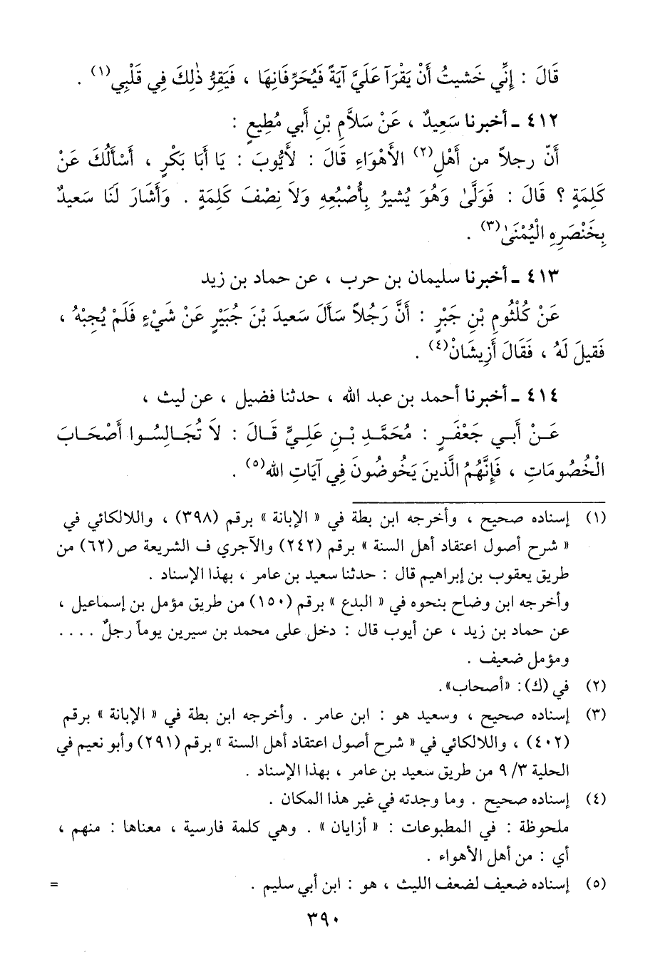 412 - أَخْبَرَنَا سَعِيدٌ، عَنْ سَلَّامِ بْنِ أَبِي مُطِيعٍ، أَنَّ رَجُلًا مِنْ أَهْلِ الْأَهْوَاءِ، قَالَ: لِأَيُّوبَ، يَا أَبَا بَكْرٍ، أَسْأَلُكَ عَنْ كَلِمَةٍ؟ قَالَ: «§فَوَلَّى، وَهُوَ يُشِيرُ بِأُصْبُعِهِ وَلَا نِصْفَ كَلِمَةٍ» وَأَشَارَ لَنَا سَعِيدٌ بِخِنْصِرِهِ الْيُمْنَىQإسناده صحيح