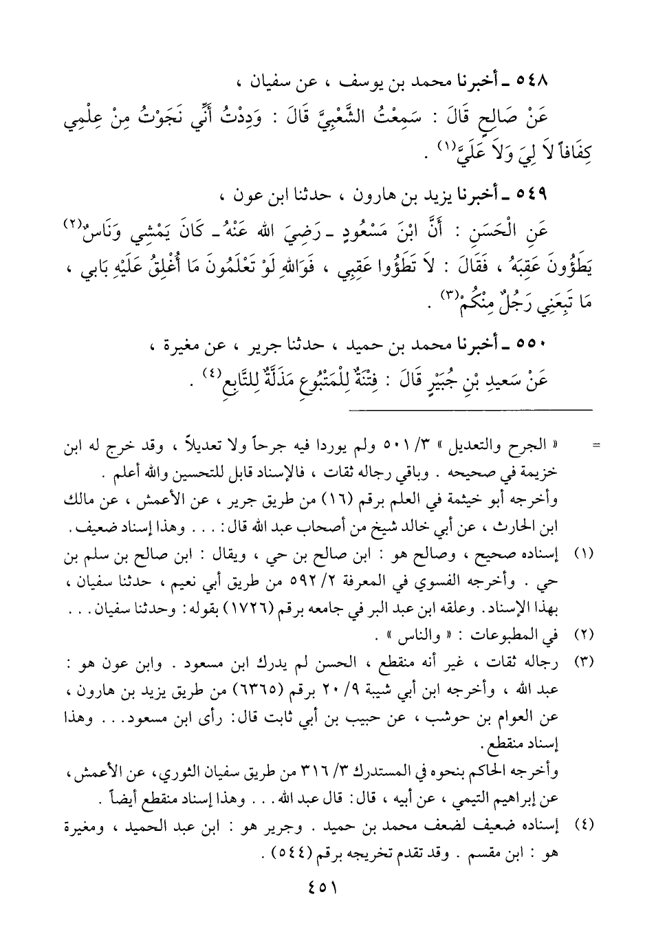 550 - أَخْبَرَنَا مُحَمَّدُ بْنُ حُمَيْدٍ، حَدَّثَنَا جَرِيرٌ، عَنْ مُغِيرَةَ، عَنْ سَعِيدِ بْنِ جُبَيْرٍ، قَالَ: «§فِتْنَةٌ لِلْمَتْبُوعِ، مَذَلَّةٌ لِلتَّابِعِ» Qإسناده ضعيف لضعف محمد بن حميد