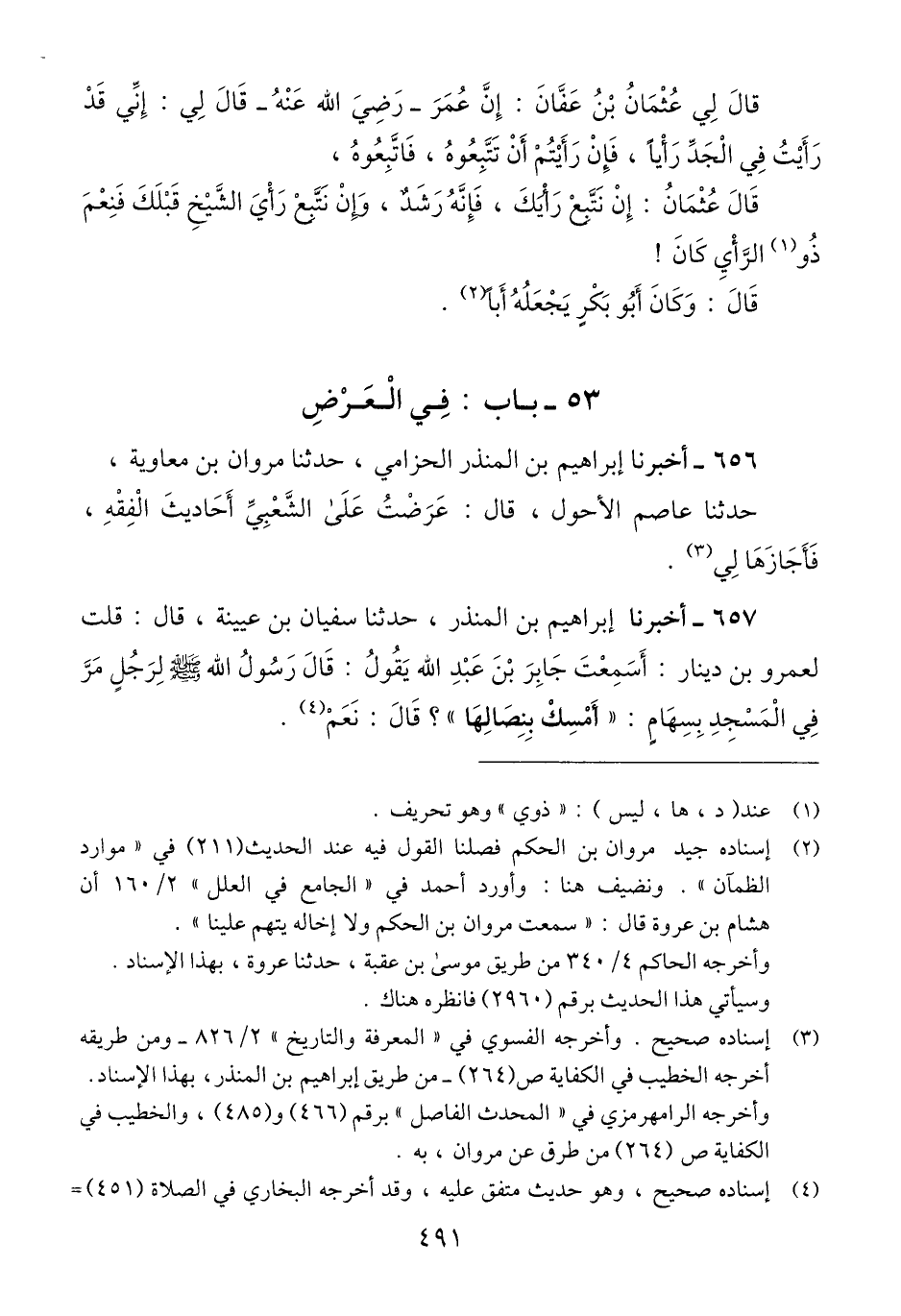 656 - أَخْبَرَنَا إِبْرَاهِيمُ بْنُ الْمُنْذِرِ الْحِزَامِيُّ، حَدَّثَنَا مَرْوَانُ بْنُ مُعَاوِيَةَ، حَدَّثَنَا عَاصِمٌ الْأَحْوَلُ، قَالَ: «§عَرَضْتُ عَلَى الشَّعْبِيِّ أَحَادِيثَ الْفِقْهِ، فَأَجَازَهَا لِي» Qإسناده صحيح