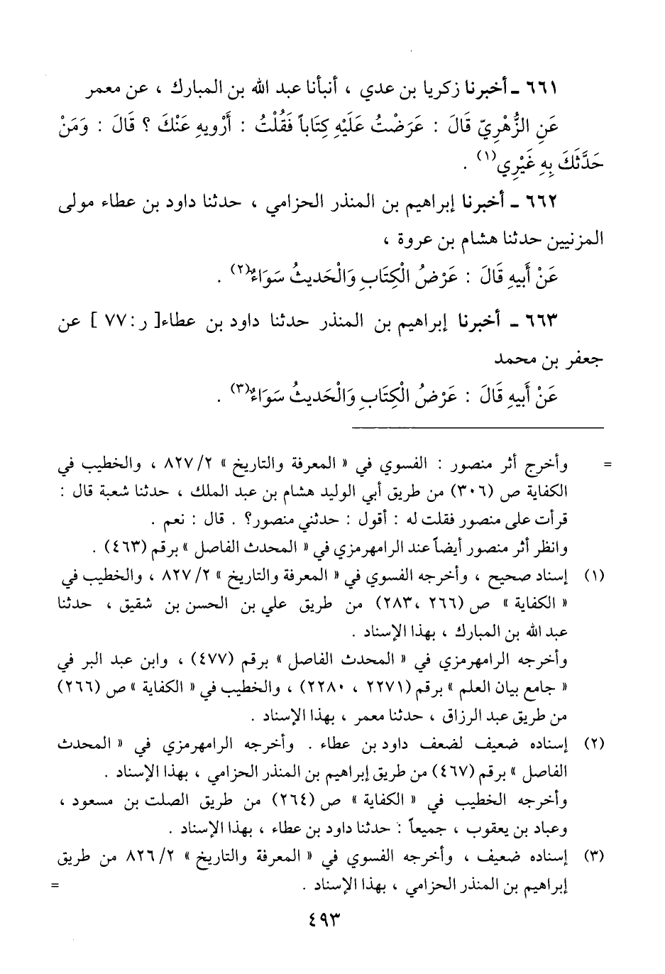 662 - أَخْبَرَنَا إِبْرَاهِيمُ بْنُ الْمُنْذِرِ الْحِزَامِيُّ، حَدَّثَنَا دَاوُدُ بْنُ عَطَاءٍ، مَوْلَى الْمُزَنِيِّينَ، حَدَّثَنَا هِشَامُ بْنُ عُرْوَةَ، عَنْ أَبِيهِ، قَالَ: «§عَرْضُ الْكِتَابِ وَالْحَدِيثُ سَوَاءٌ» Qإسناده ضعيف لضعف داود بن عطاء