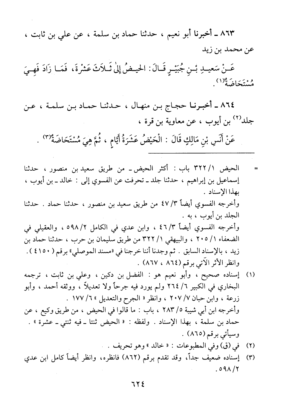 863 - أَخْبَرَنَا أَبُو نُعَيْمٍ، حَدَّثَنَا حَمَّادُ بْنُ سَلَمَةَ، عَنْ عَلِيِّ بْنِ ثَابِتٍ، عَنْ مُحَمَّدِ بْنِ زَيْدٍ، عَنْ سَعِيدِ بْنِ جُبَيْرٍ، قَالَ: «§الْحَيْضُ إِلَى ثَلَاثَ عَشْرَةَ، فَمَا زَادَ فَهِيَ مُسْتَحَاضَةٌ» Qإسناده صحيح