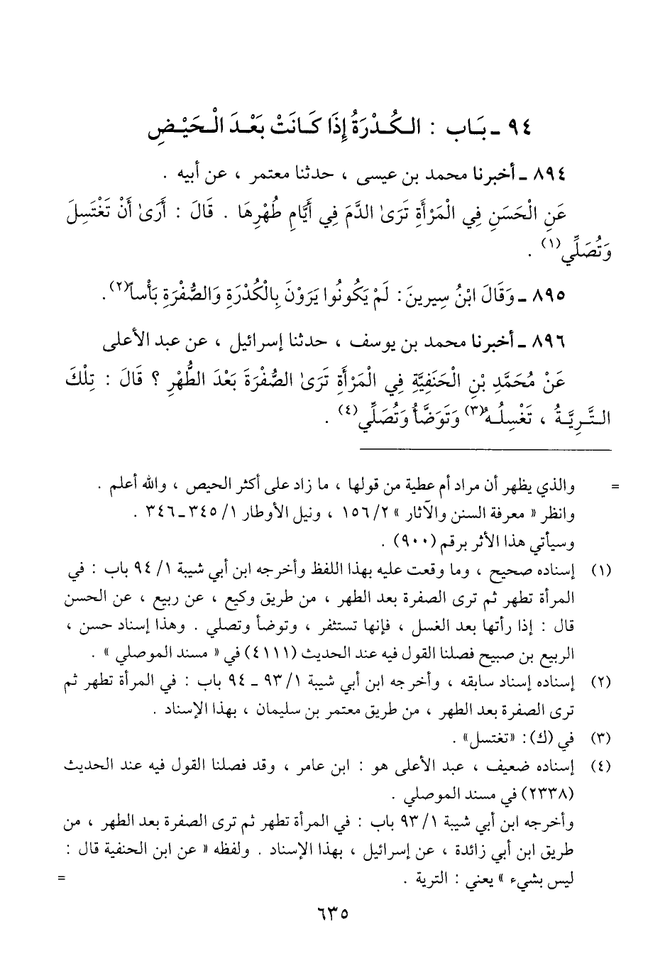 895 - وَقَالَ ابْنُ سِيرينَ: «§لمْ يَكُونُوا يَرَوْنَ بِالْكُدْرَةِ وَالصُّفْرَةِ بَأْسًا»