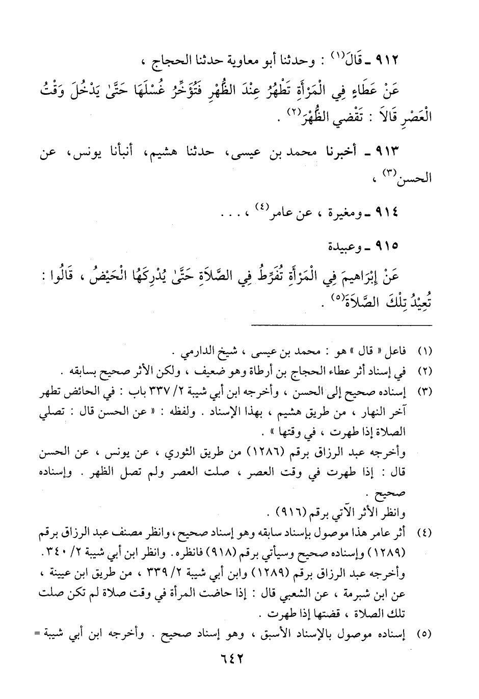عَنْ إِبْرَاهِيمَ، فِي الْمَرْأَةِ §تُفَرِّطُ فِي الصَّلَاةِ حَتَّى يُدْرِكَهَا الْحَيْضُ، قَالُوا: «تُعِيدُ تِلْكَ الصَّلَاةَ» Qالحديث الأول محمد بن عيسى حدثنا هشيم أنبأنا يونس عن الحسن إسناده صحيح إلى الحسن. والحديث الثاني مغيرة عن عامر إسناده صحيح. والحديث الثالث عبيدة إسناده صحيح