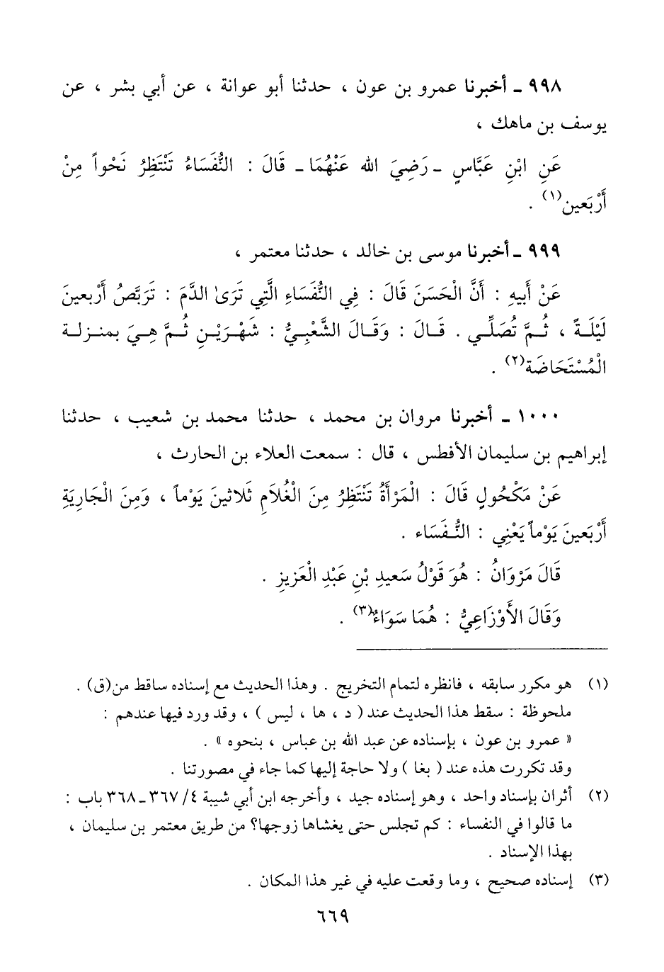 998 - أَخْبَرَنَا عَمْرُو بْنُ عَوْنٍ، حَدَّثَنَا أَبُو عَوَانَةَ، عَنْ أَبِي بِشْرٍ، عَنْ يُوسُفَ بْنِ مَاهَكَ، عَنِ ابْنِ عَبَّاسٍ رَضِيَ اللَّهُ عَنْهُمَا، قَالَ: «§النُّفَسَاءُ تَنْتَظِرُ نَحْوًا مِنْ أَرْبَعِينَ»
