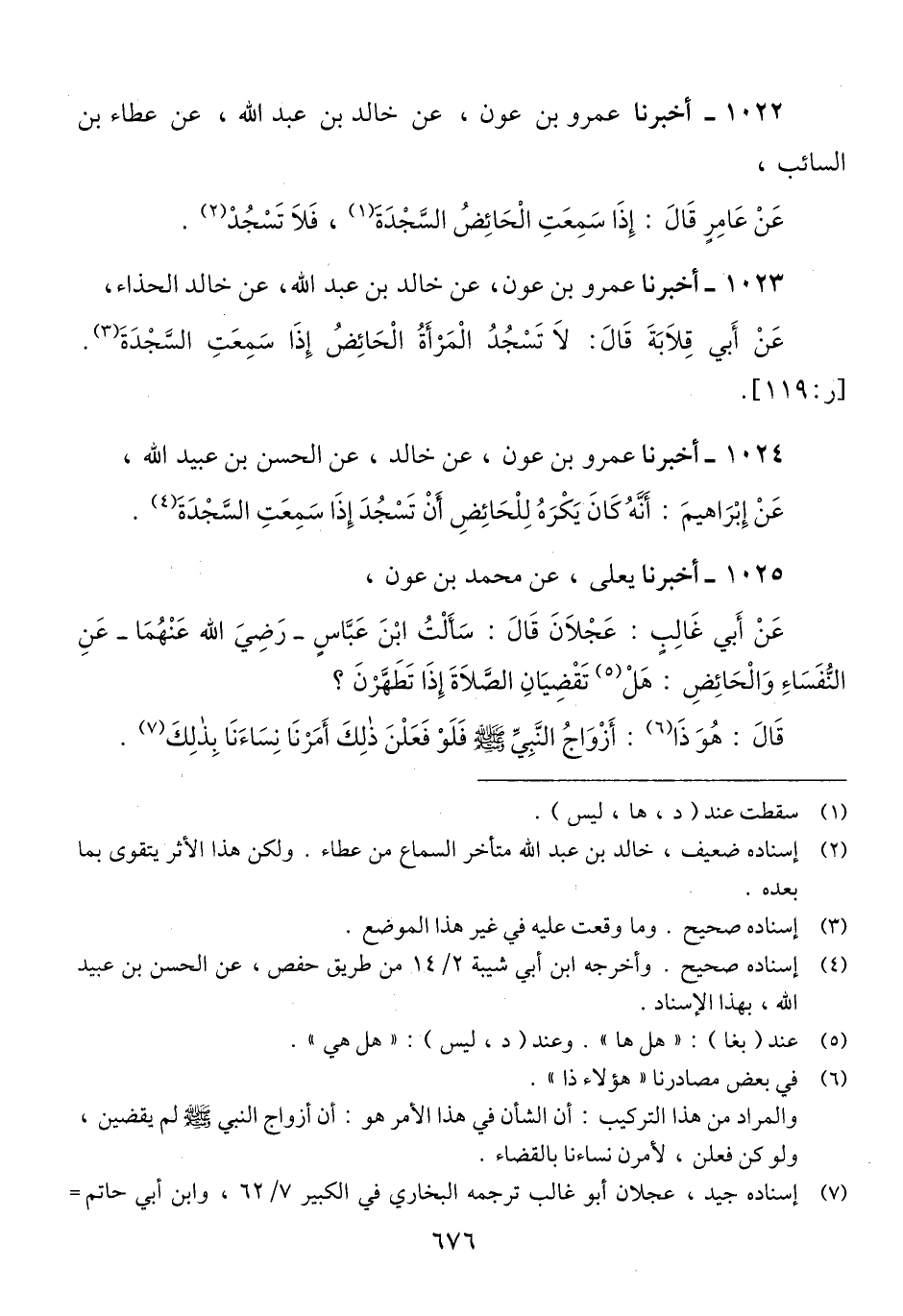 1022 - أَخْبَرَنَا عَمْرُو بْنُ عَوْنٍ، عَنْ خَالِدِ بْنِ عَبْدِ اللَّهِ، عَنْ عَطَاءِ بْنِ السَّائِبِ، عَنْ عَامِرٍ، قَالَ: «§إِذَا سَمِعَتِ الْحَائِضُ السَّجْدَةَ، فَلَا تَسْجُدْ» Qإسناده ضعيف خالد بن عبد الله متأخر السماع من عطاء