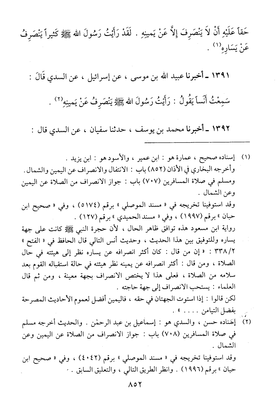 1391 - أَخْبَرَنَا عُبَيْدُ اللَّهِ بْنُ مُوسَى، عَنْ إِسْرَائِيلَ، عَنِ السُّدِّيِّ، قَالَ: سَمِعْتُ أَنَسًا، يَقُولُ «§رَأَيْتُ رَسُولَ اللَّهِ صَلَّى اللهُ عَلَيْهِ وَسَلَّمَ يَنْصَرِفُ عَنْ يَمِينِهِ» Qإسناده حسن