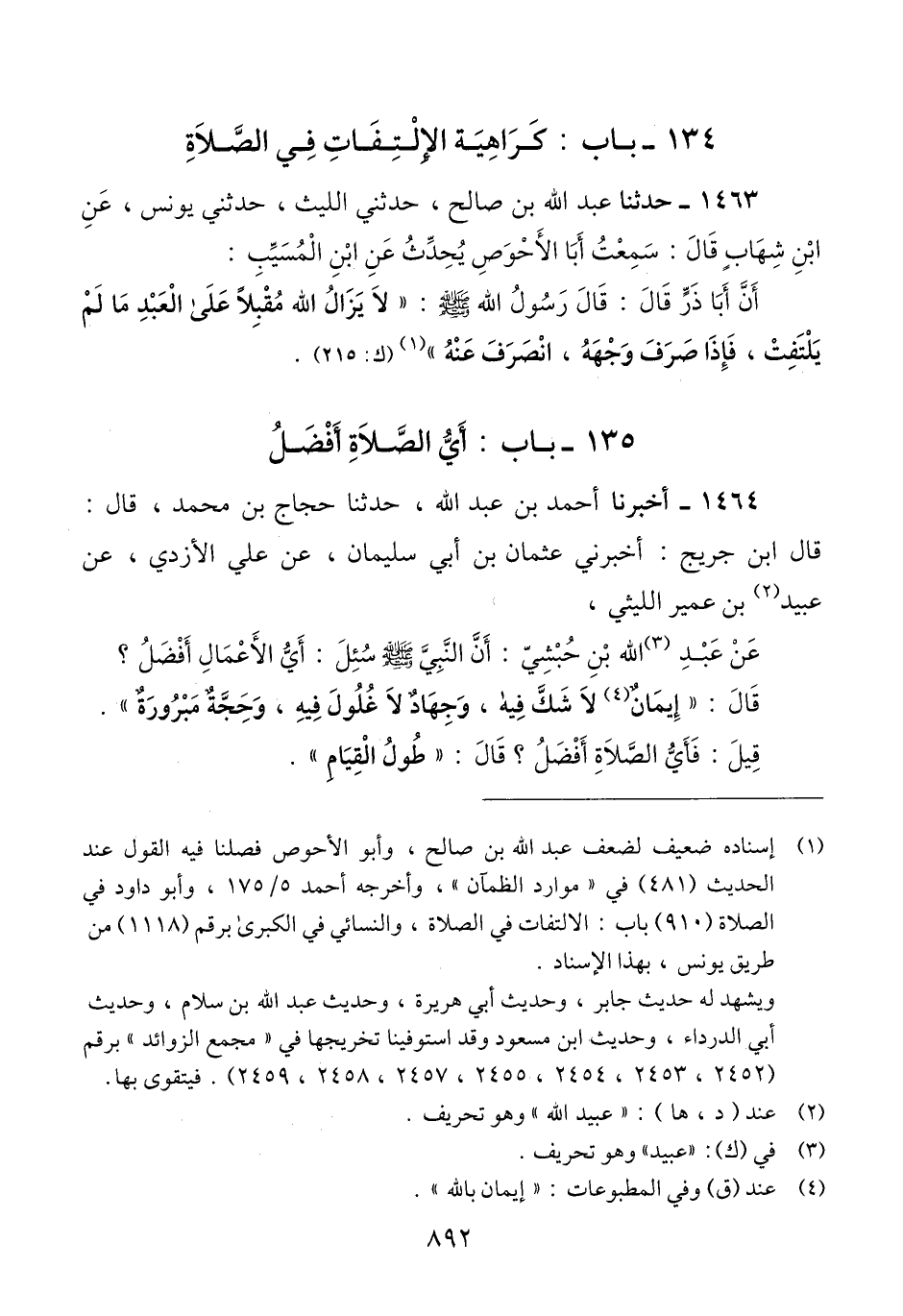 1463 - حَدَّثَنَا عَبْدُ اللَّهِ بْنُ صَالِحٍ، حَدَّثَنِي اللَّيْثُ، حَدَّثَنِي يُونُسُ، عَنِ ابْنِ شِهَابٍ، قَالَ: سَمِعْتُ أَبَا الْأَحْوَصِ، يُحَدِّثُ عَنِ ابْنِ الْمُسَيَّبِ، أَنَّ أَبَا ذَرٍّ، قَالَ: قَالَ رَسُولُ اللَّهِ صَلَّى اللهُ عَلَيْهِ وَسَلَّمَ: «§لَا يَزَالُ اللَّهُ مُقْبِلًا عَلَى الْعَبْدِ، مَا لَمْ يَلْتَفِتْ، فَإِذَا صَرَفَ وَجْهَهُ، انْصَرَفَ عَنْهُ» Qإسناده ضعيف لضعف عبد الله بن صالح
