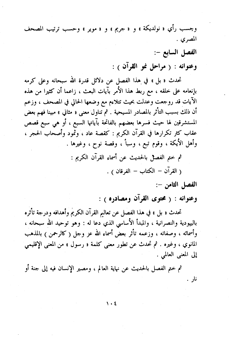 الفصل الثامن -: وعنوانه: (محتوى القرآن ومصادره):