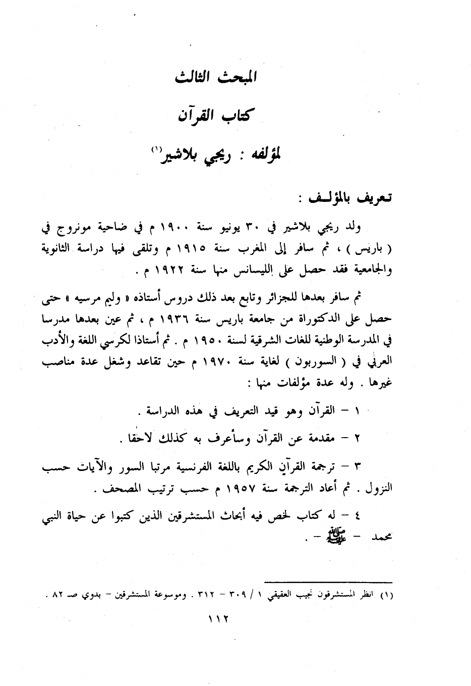 المبحث الثالث كتاب القرآن لمؤلفه: ريجي بلاشير «1»