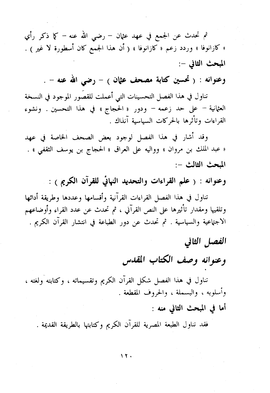 فقد تناول الطبعة المصرية للقرآن الكريم وكتابتها بالطريقة القديمة.