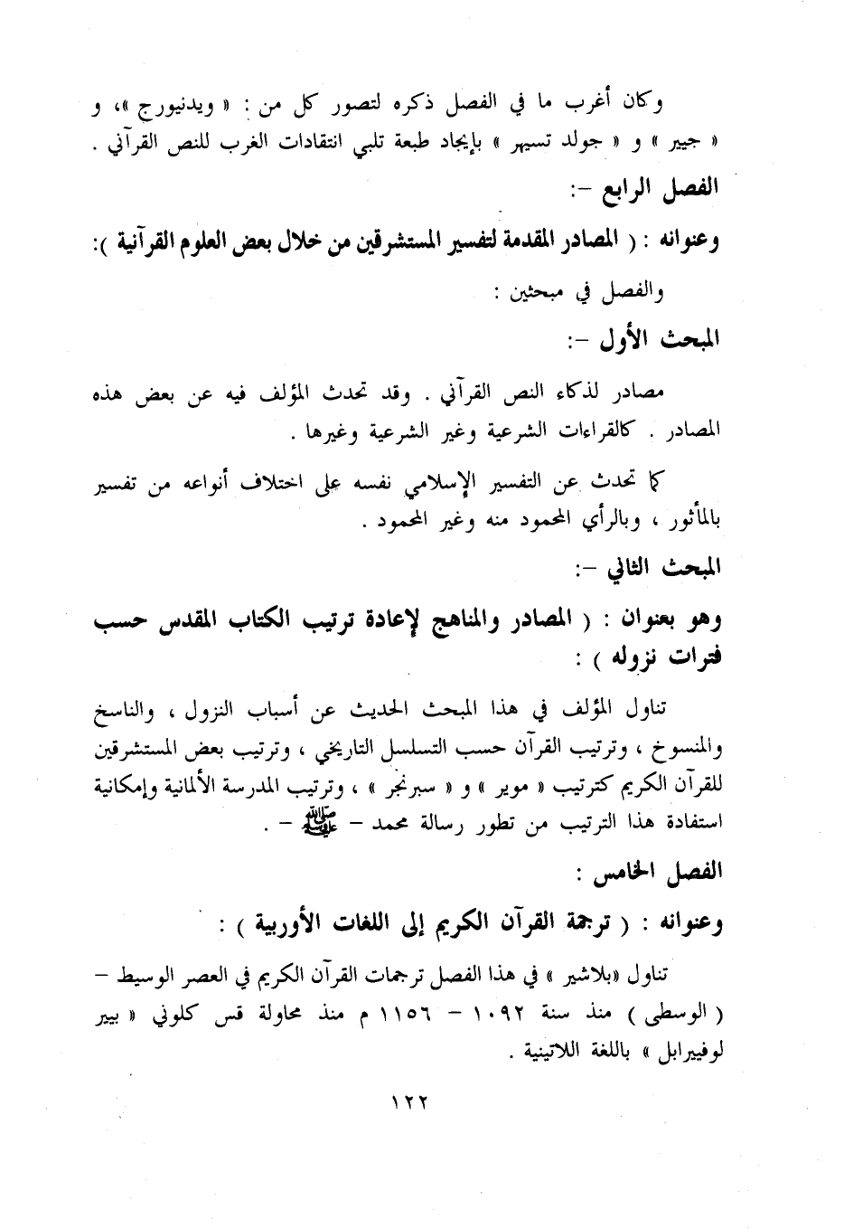 وكان أغرب ما في الفصل ذكره لتصور كل من: «ويدنيورج»، و «جيير» و «جولد تسيهر» بإيجاد طبعة تلبي انتقادات الغرب للنص القرآني.