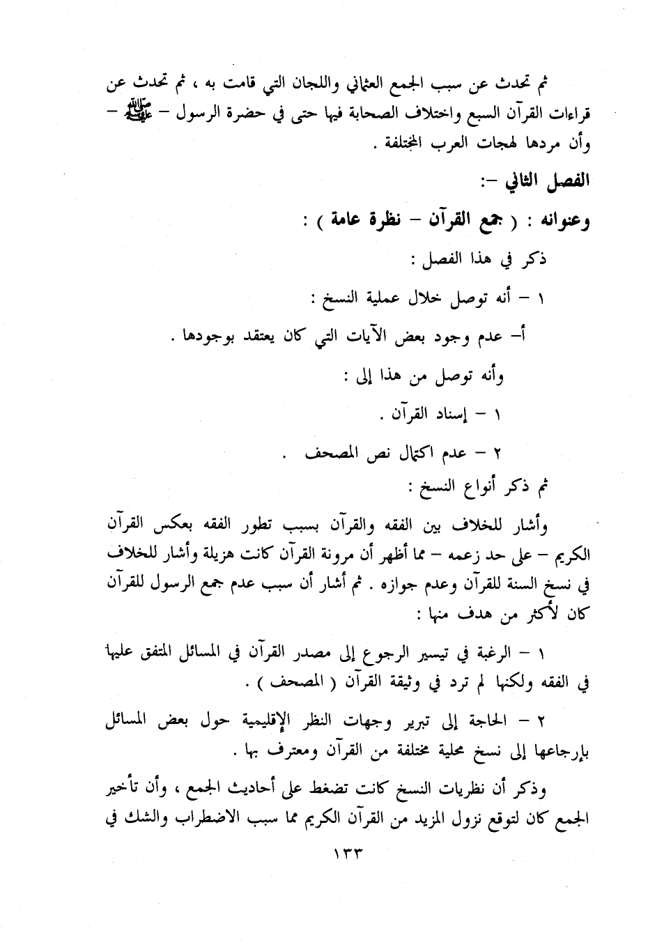 الفصل الثاني -: وعنوانه: (جمع القرآن - نظرة عامة):