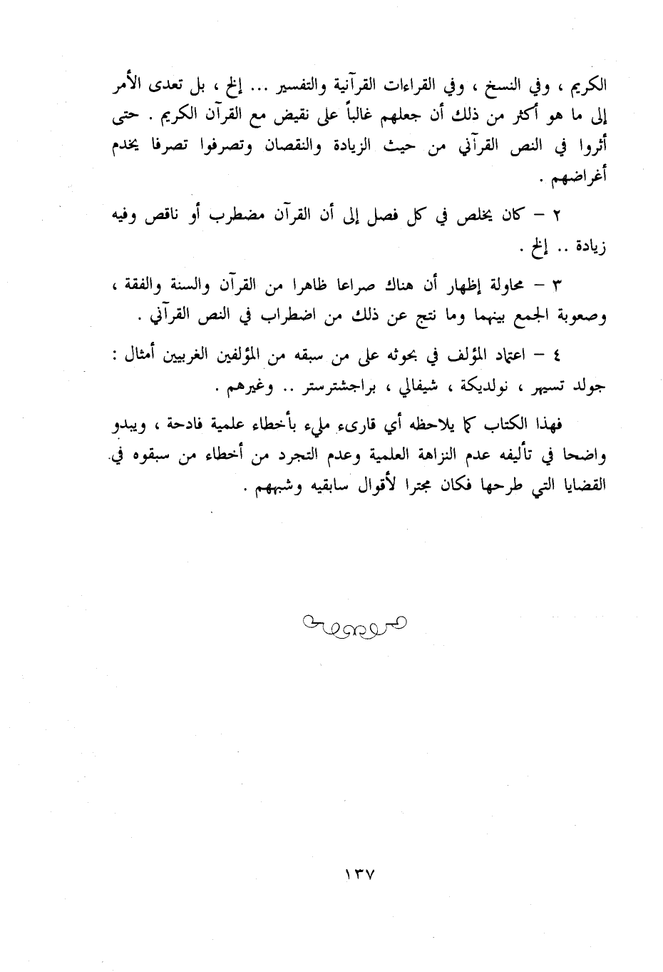 2 - كان يخلص في كل فصل إلى أن القرآن مضطرب أو ناقص وفيه زيادة .. إلخ.