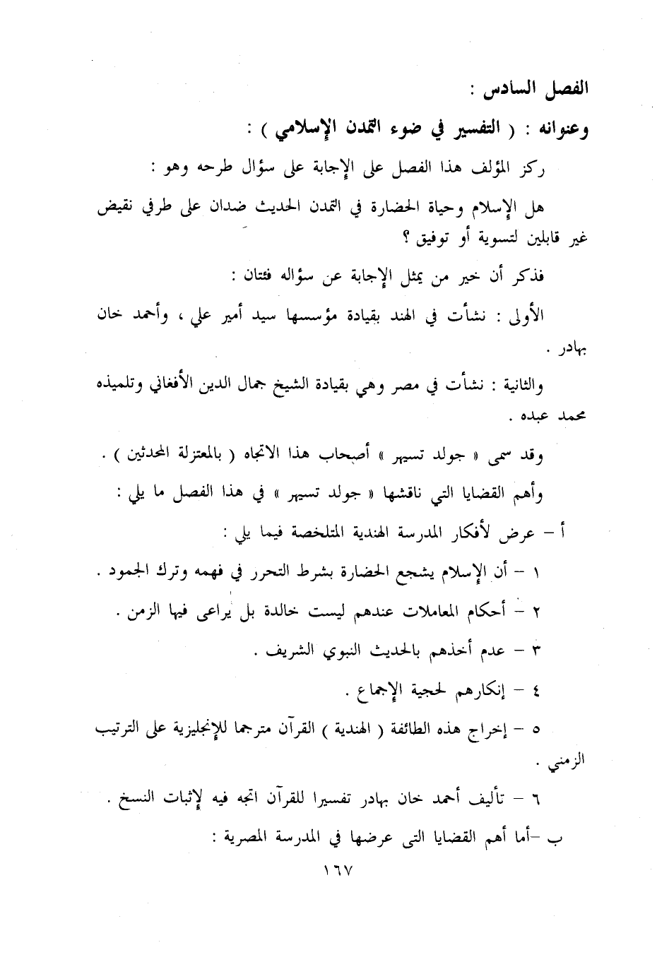 وأهم القضايا التي ناقشها «جولد تسيهر» في هذا الفصل ما يلي: