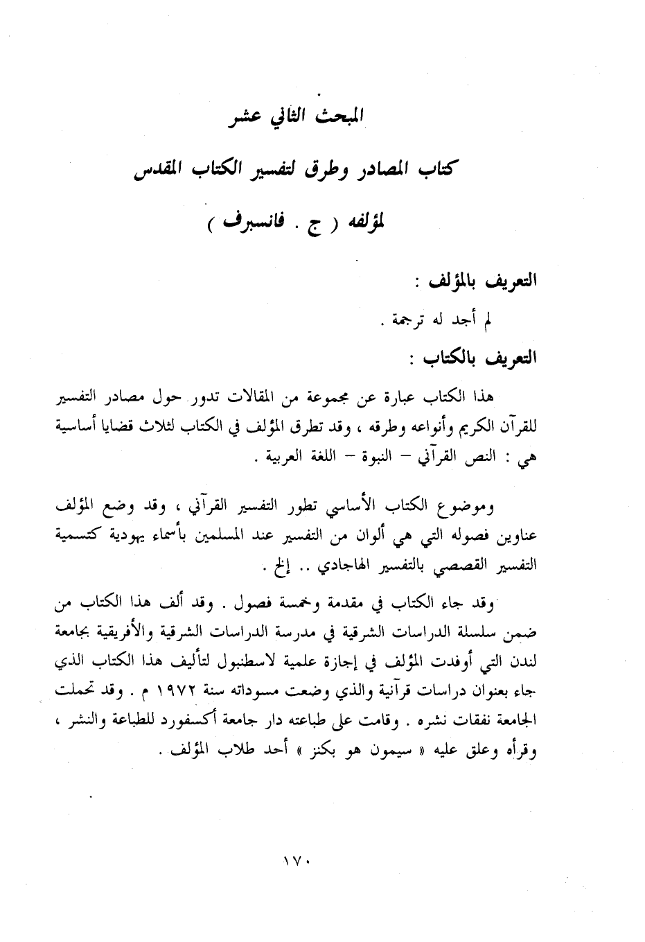المبحث الثاني عشر كتاب المصادر وطرق لتفسير الكتاب المقدس لمؤلفه (ج. فانسبرف)