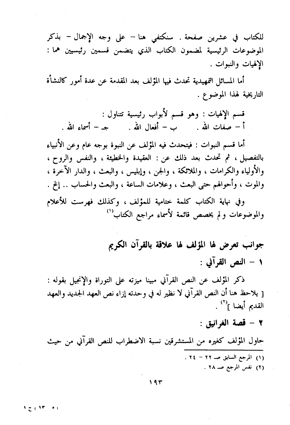 للكتاب في عشرين صفحة. سنكتفي هنا - على وجه الإجمال - بذكر الموضوعات الرئيسية لمضمون الكتاب الذي يتضمن قسمين رئيسيين هما: