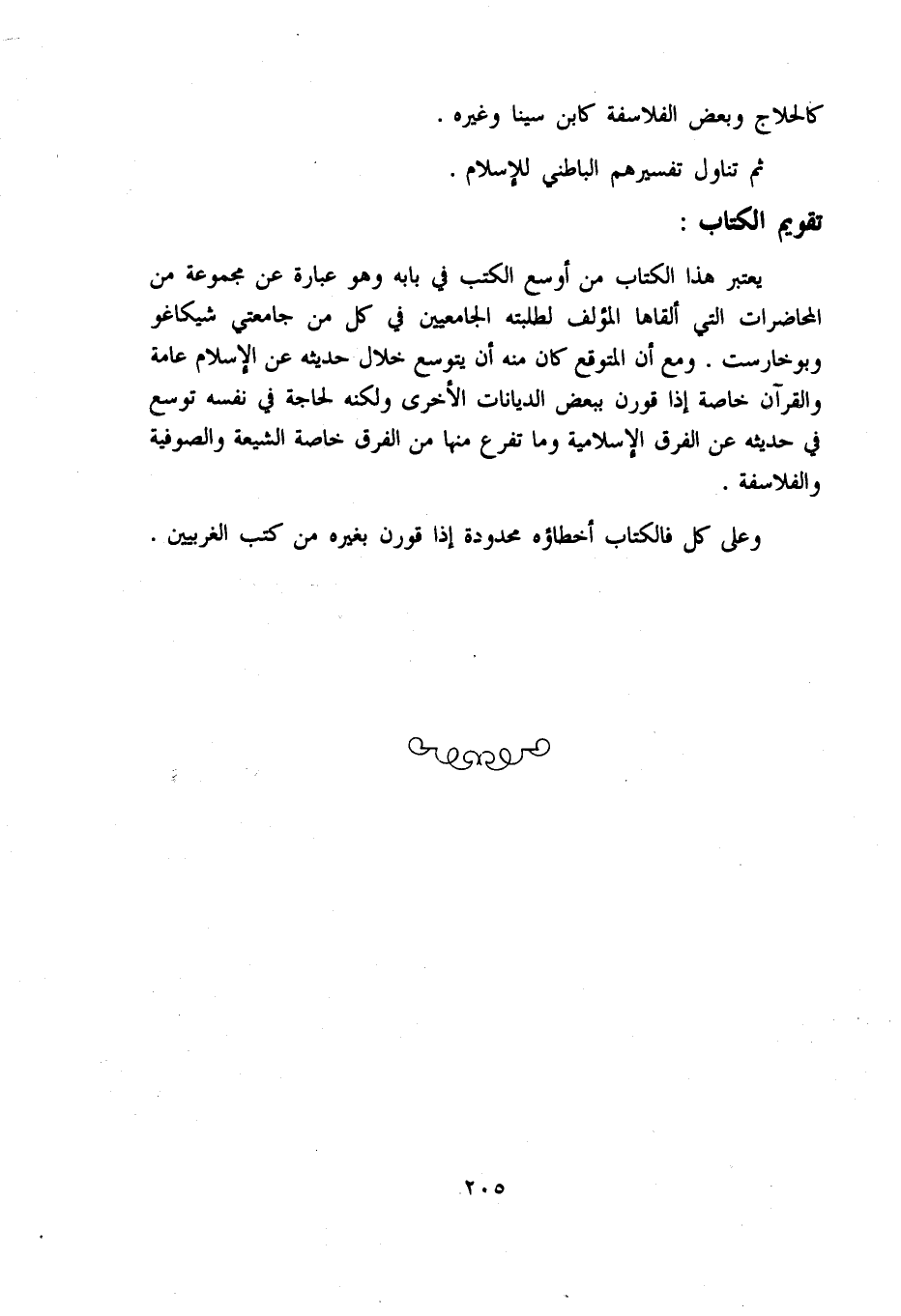 يعتبر هذا الكتاب من أوسع الكتب في بابه وهو عبارة عن مجموعة من المحاضرات التي ألقاها المؤلف لطلبته الجامعيين في كل من جامعتي شيكاغو وبوخارست. ومع أن المتوقع كان منه أن يتوسع خلال حديثه عن الإسلام عامة والقرآن خاصة إذا قورن ببعض الديانات الأخرى ولكنه لحاجة في نفسه توسع في حديثه عن الفرق الإسلامية وما تفرع منها من الفرق خاصة الشيعة والصوفية والفلاسفة.
