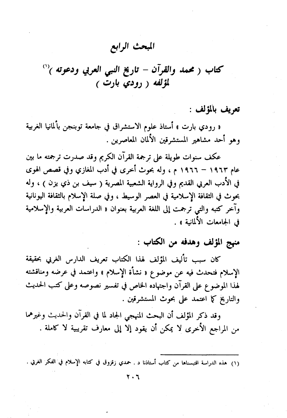 المبحث الرابع كتاب (محمد والقرآن - تاريخ النبي العربي ودعوته) «1» لمؤلفه (رودي بارت)
