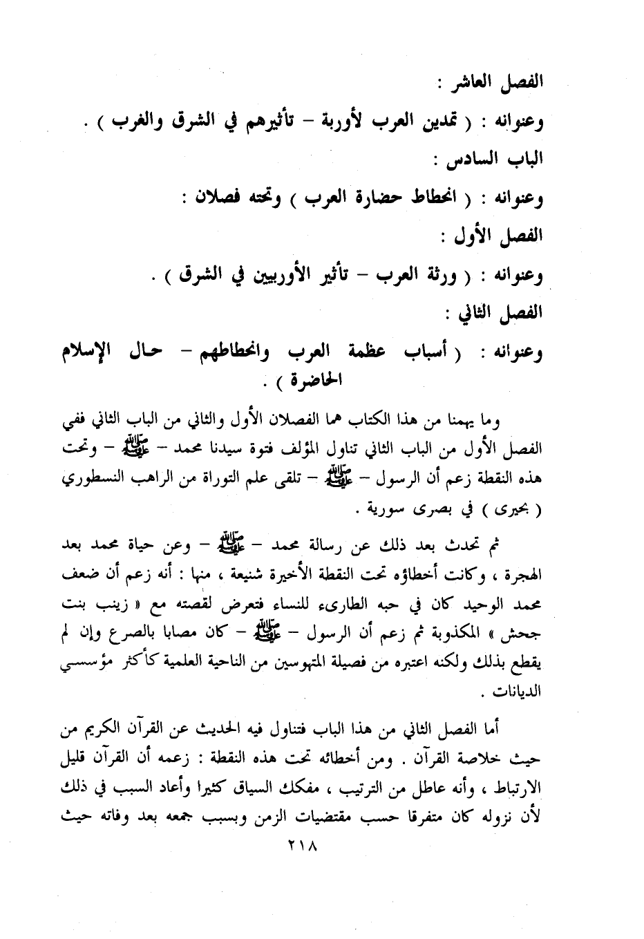 وعنوانه: (انحطاط حضارة العرب) وتحته فصلان: