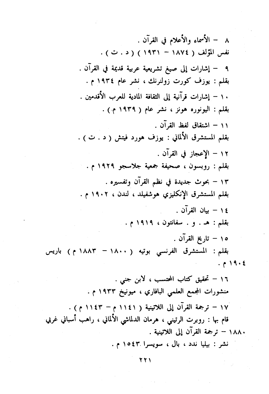 8 - الأسماء والأعلام في القرآن. نفس المؤلف (1874 - 1931) (د. ت).