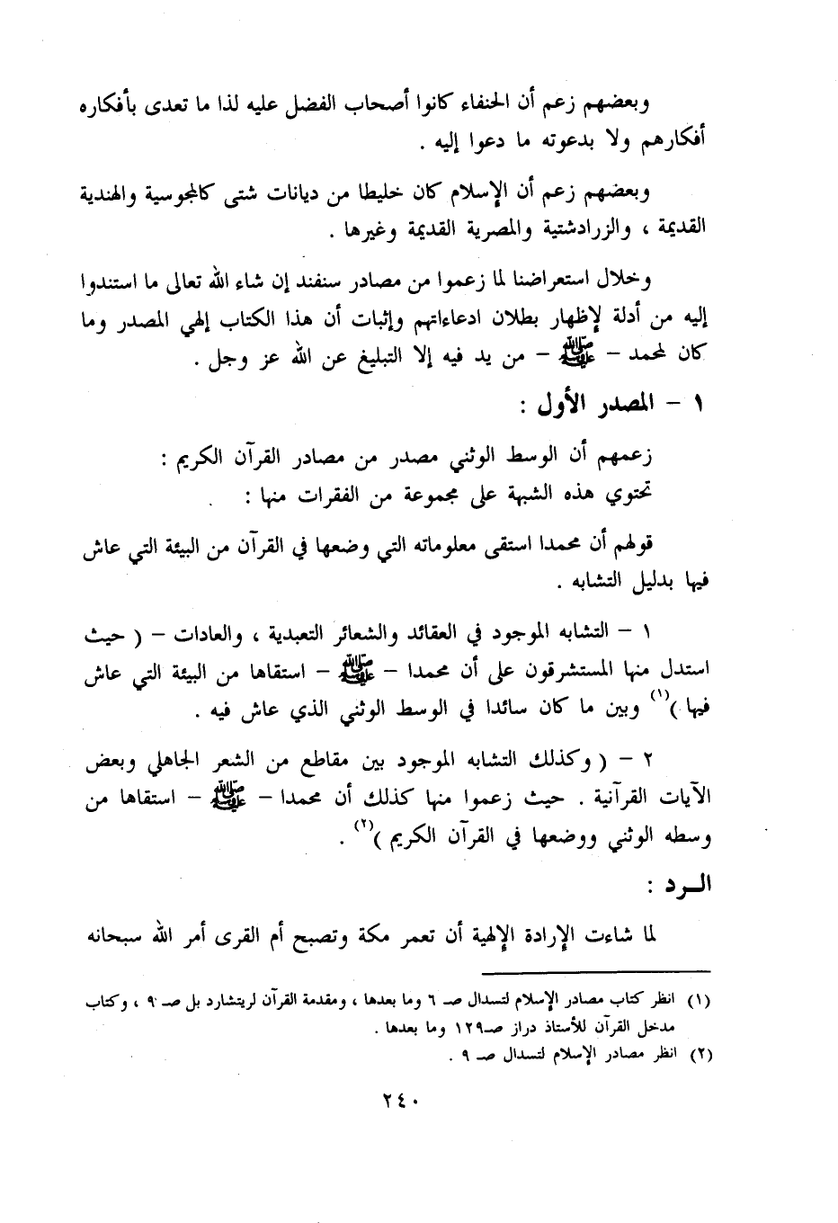 (1) انظر كتاب مصادر الإسلام لتسدال ص 6 وما بعدها، ومقدمة القرآن لريتشارد بل ص 9، وكتاب مدخل القرآن للأستاذ دراز ص 129 وما بعدها.