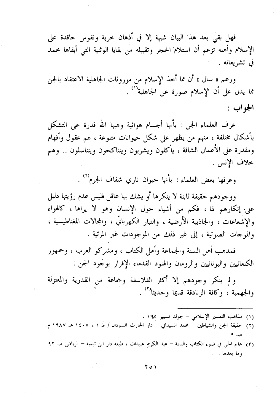 (3) عالم الجن في ضوء الكتاب والسنة - عبد الكريم عبيدات، طبعة دار ابن تيمية - الرياض ص 92 وما بعدها.