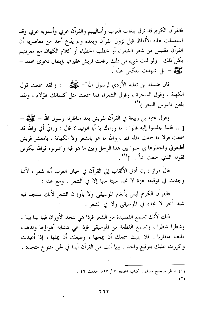 فالقرآن الكريم ليس بأنغام الموسيقى ولا بأوزان الشعر لأنك ستجد فيه شيئا آخر لا تجده في الموسيقى ولا في الشعر.