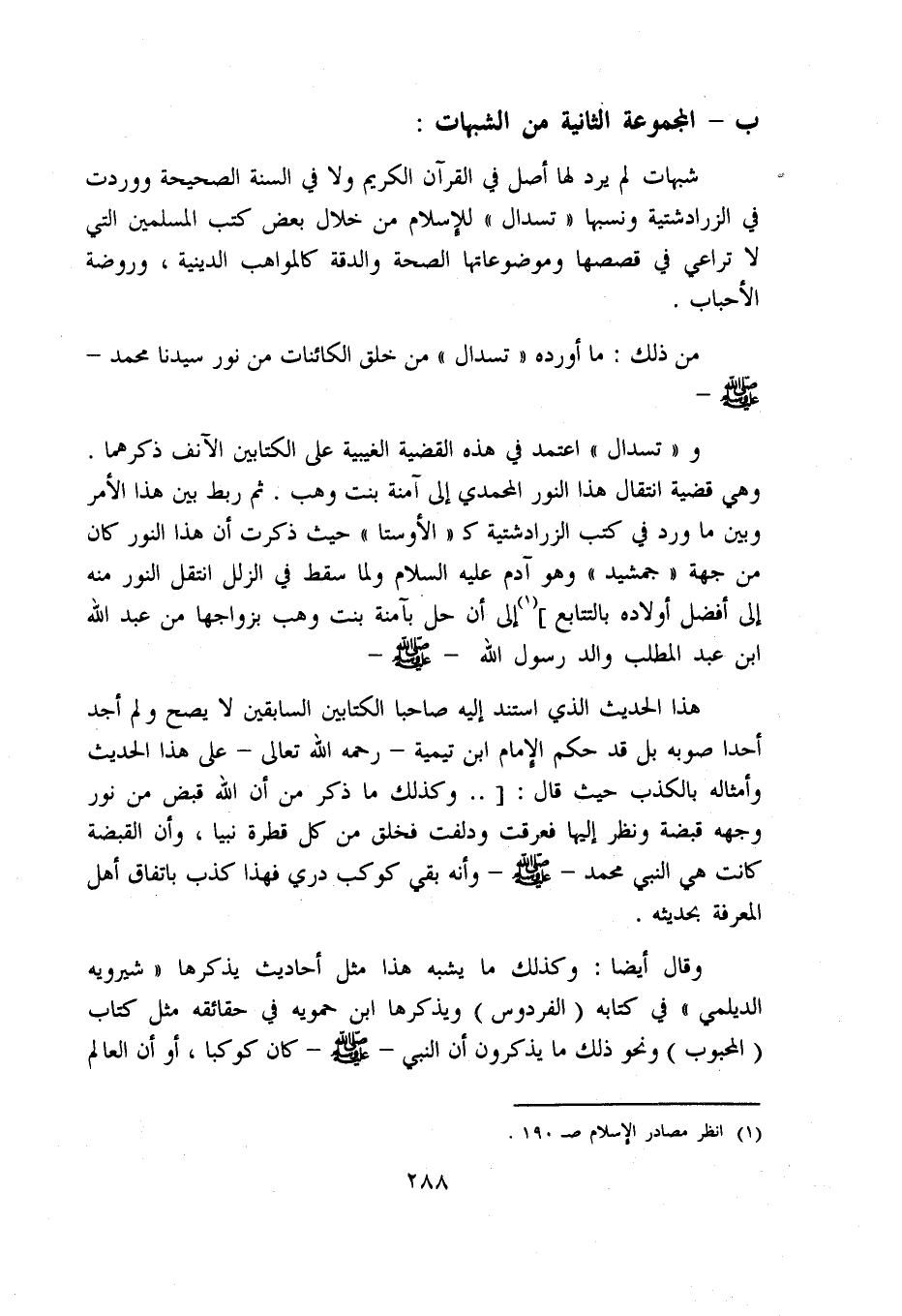 ب - المجموعة الثانية من الشبهات: