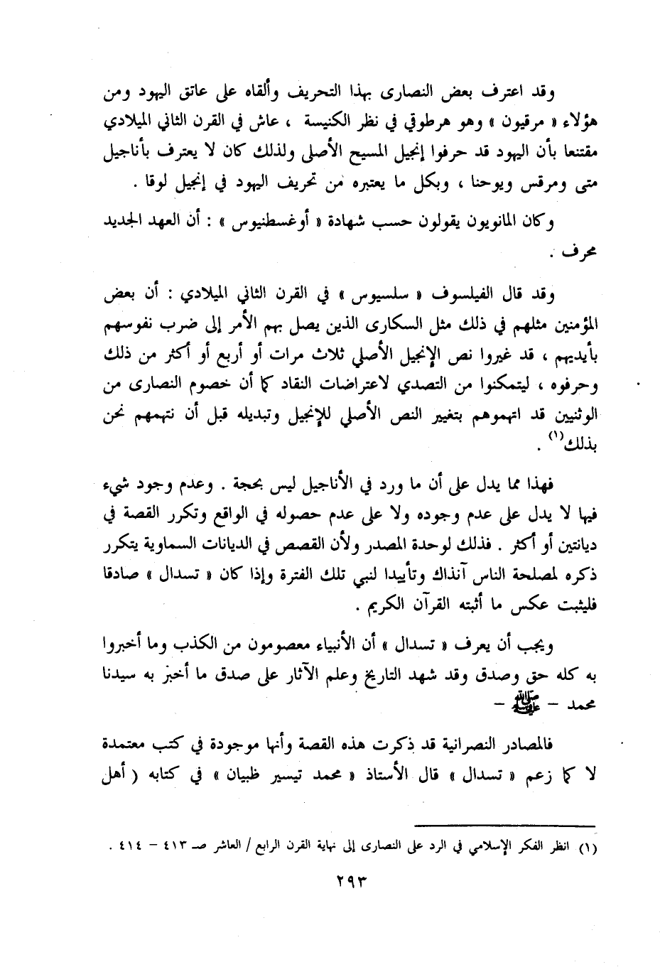 (1) انظر الفكر الإسلامي في الرد على النصارى إلى نهاية القرن الرابع/ العاشر ص 413 - 414.