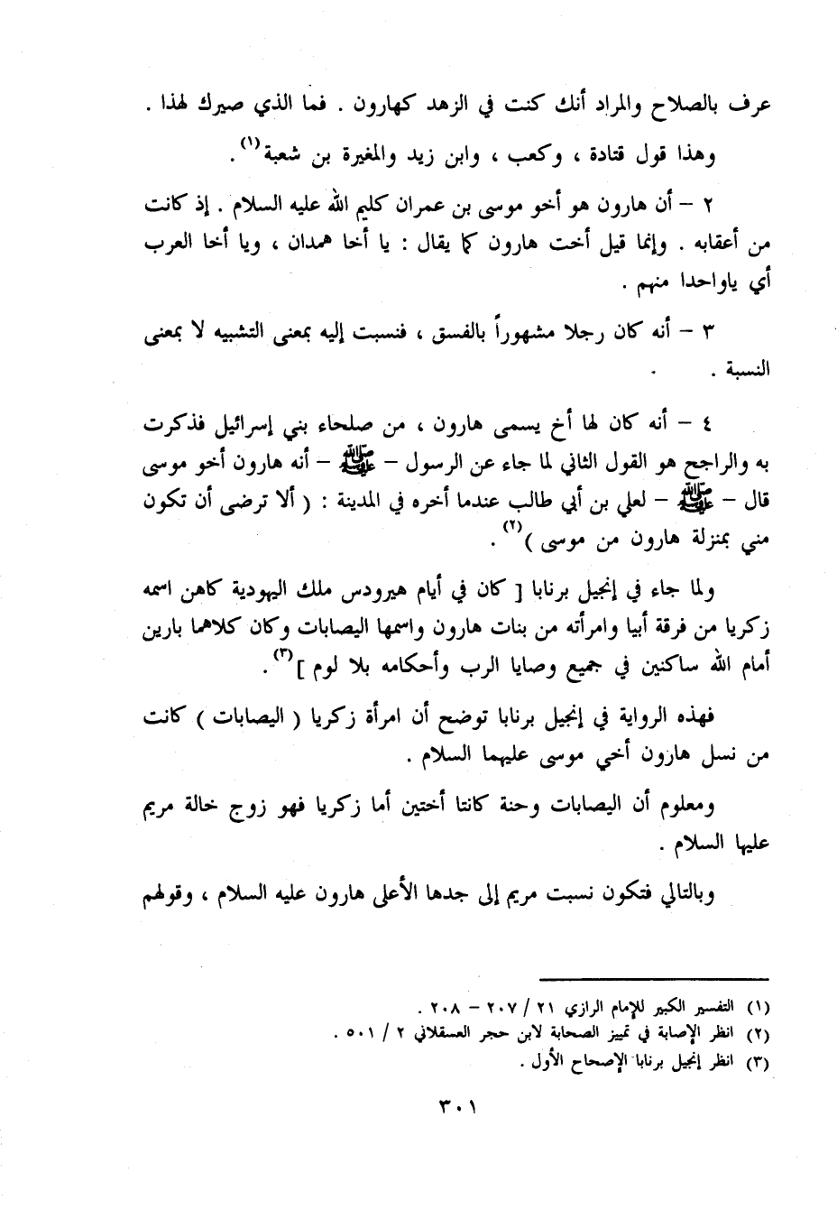 4 - أنه كان لها أخ يسمى هارون، من صلحاء بني إسرائيل فذكرت به والراجح هو القول الثاني لما جاء عن الرسول - صلّى اللّه عليه وسلّم - أنه هارون أخو موسى قال - صلّى اللّه عليه وسلّم - لعلي بن أبي طالب عند ما أخره في المدينة: (أ لا ترضى أن تكون مني بمنزلة هارون من موسى) «2».