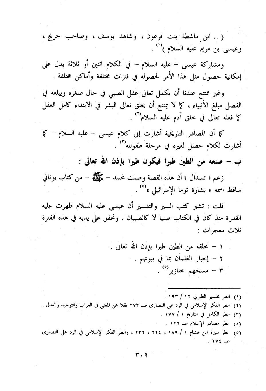 كما أن المصادر التاريخية أشارت إلى كلام عيسى - عليه السلام - كما أشارت لكلام حصل لغيره في مرحلة طفولته «3».
