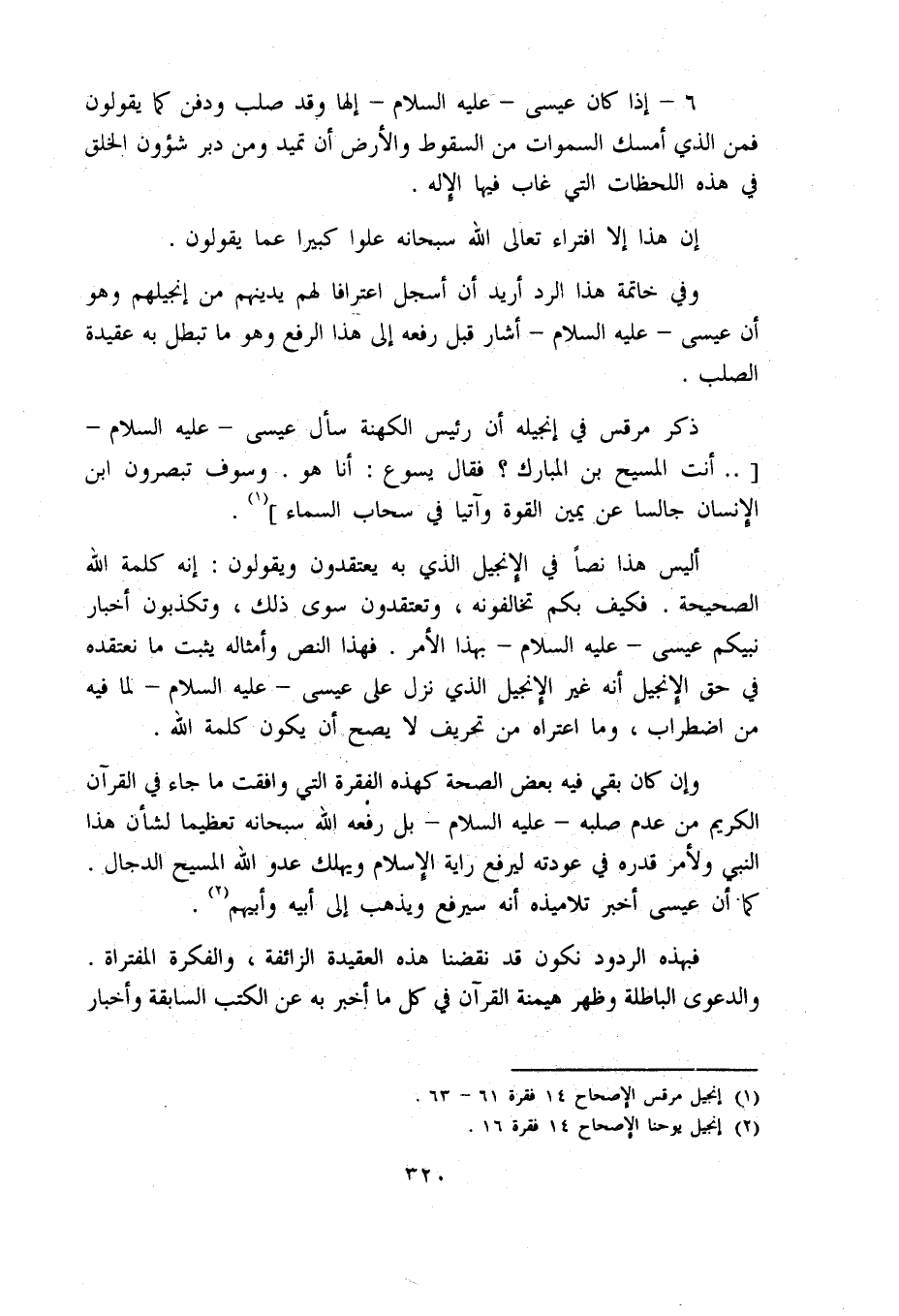 وإن كان بقي فيه بعض الصحة كهذه الفقرة التي وافقت ما جاء في القرآن الكريم من عدم صلبه - عليه السلام - بل رفعه اللّه سبحانه تعظيما لشأن هذا النبي ولأمر قدره في عودته ليرفع راية الإسلام ويهلك عدو اللّه المسيح الدجال.