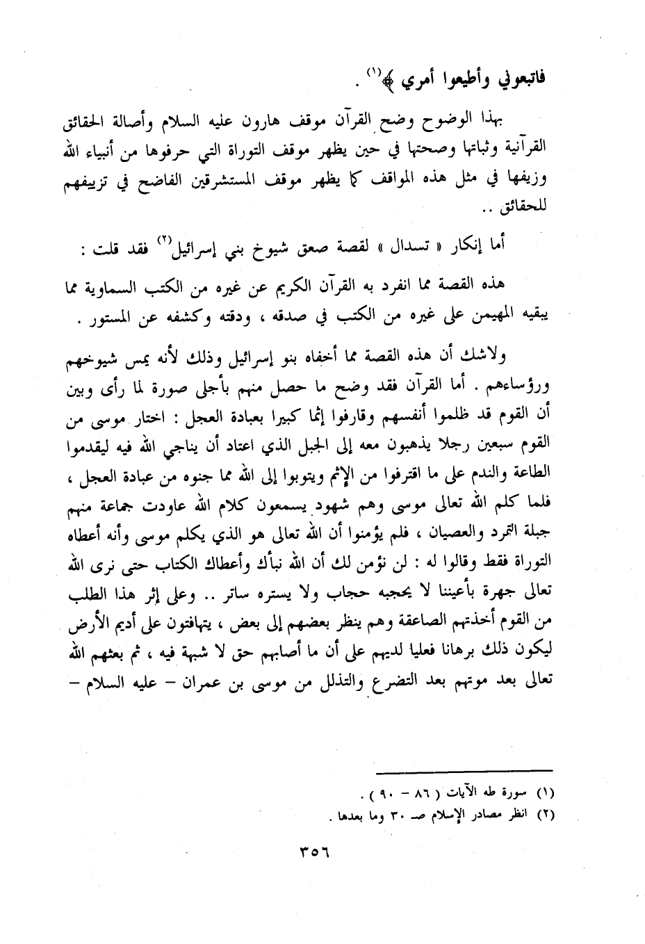 بهذا الوضوح وضح القرآن موقف هارون عليه السلام وأصالة الحقائق القرآنية وثباتها وصحتها في حين يظهر موقف التوراة التي حرفوها من أنبياء اللّه وزيفها في مثل هذه المواقف كما يظهر موقف المستشرقين الفاضح في تزييفهم للحقائق ..