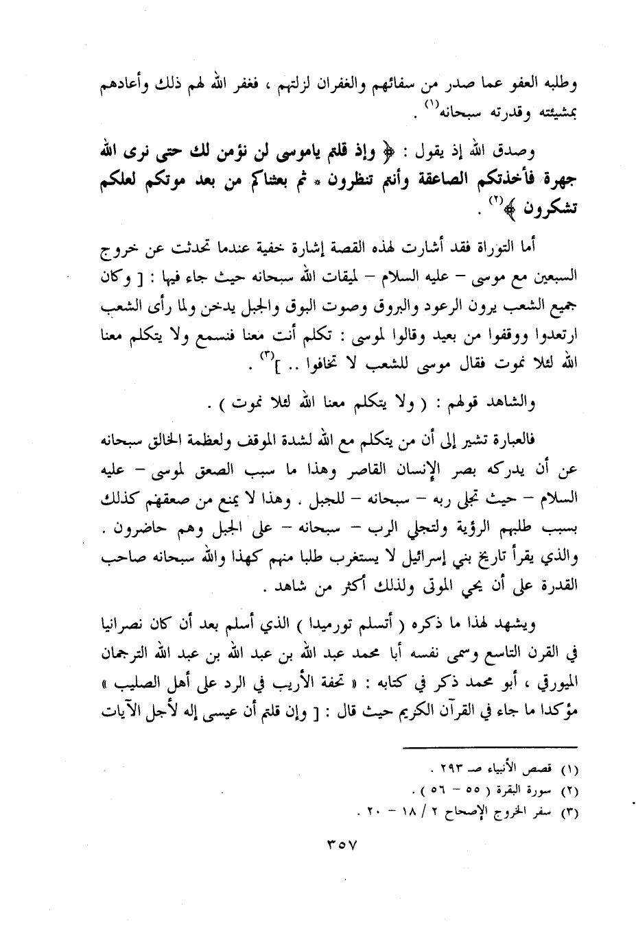 وصدق اللّه إذ يقول: وإِذْ قُلْتُمْ يا مُوسى لَنْ نُؤْمِنَ لَكَ حَتَّى نَرَى اللَّهَ جَهْرَةً فَأَخَذَتْكُمُ الصَّاعِقَةُ وأَنْتُمْ تَنْظُرُونَ* ثُمَّ بَعَثْناكُمْ مِنْ بَعْدِ مَوْتِكُمْ لَعَلَّكُمْ تَشْكُرُونَ «2».