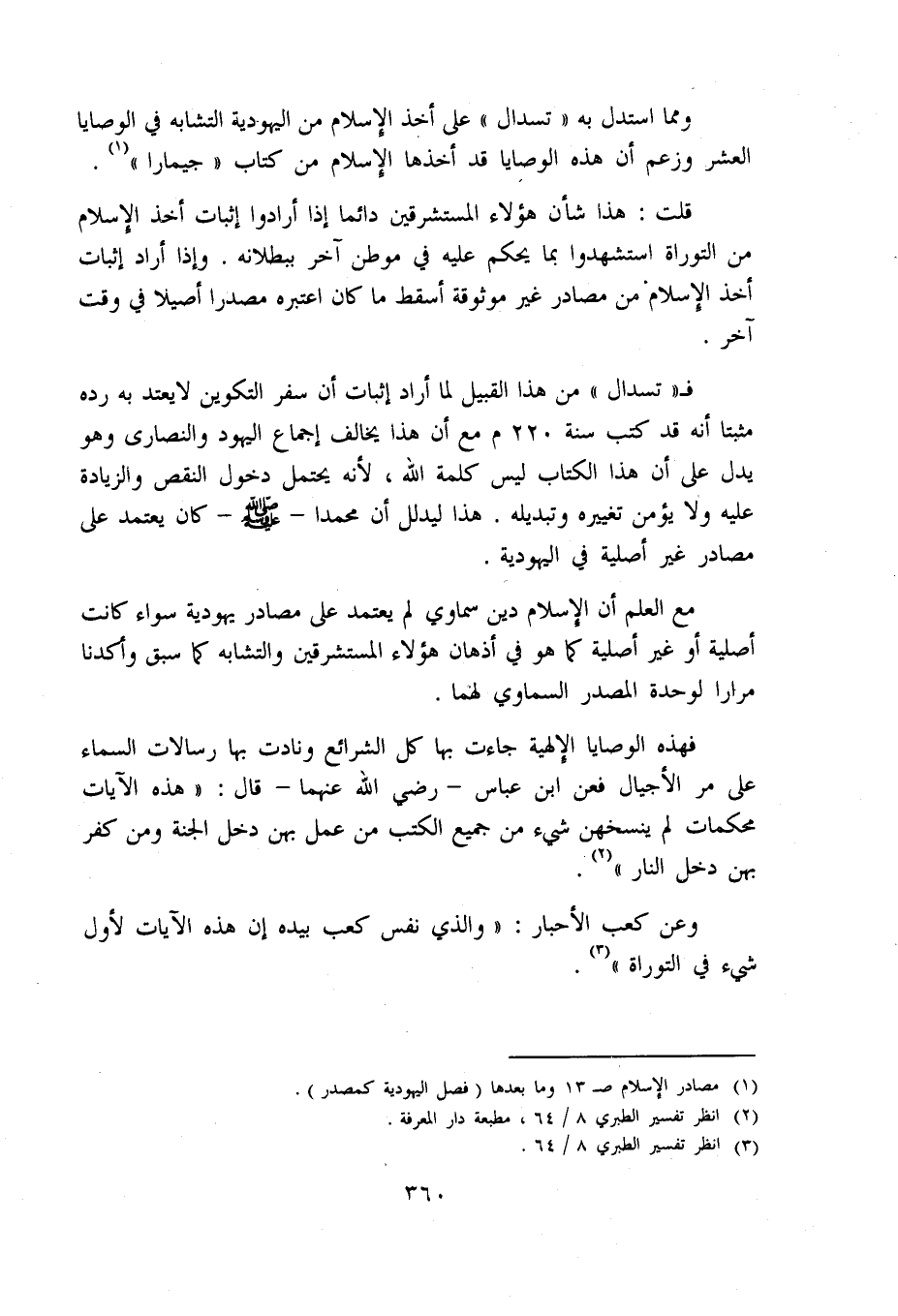 (1) مصادر الإسلام ص 13 وما بعدها (فصل اليهودية كمصدر).