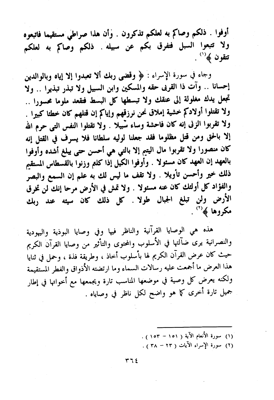 هذه هي الوصايا القرآنية والناظر فيها وفي وصايا البوذية واليهودية والنصرانية يرى ضالتها في الأسلوب والمحتوى والتأثير من وصايا القرآن الكريم حيث كان عرض القرآن الكريم لها بأسلوب أخاذ، وطريقة فذة، وحمل في ثنايا هذا العرض ما أجمعت عليه رسالات السماء وما ارتضته الأذواق والفطر المستقيمة ولكنه يعرض كل وصية في موضعها المناسب تارة ويجمعها مع أخواتها في إطار جميل تارة أخرى كما هو واضح لكل ناظر في وصاياه.