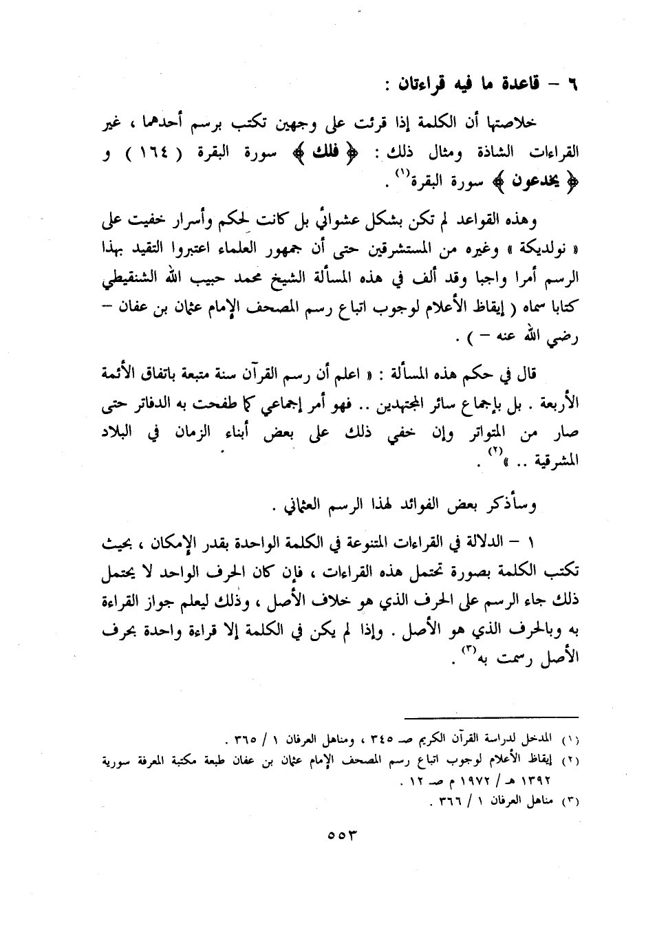 (2) إيقاظ الأعلام لوجوب اتباع رسم المصحف الإمام عثمان بن عفان طبعة مكتبة المعرفة سورية 1392 ه/ 1972 م ص 12.