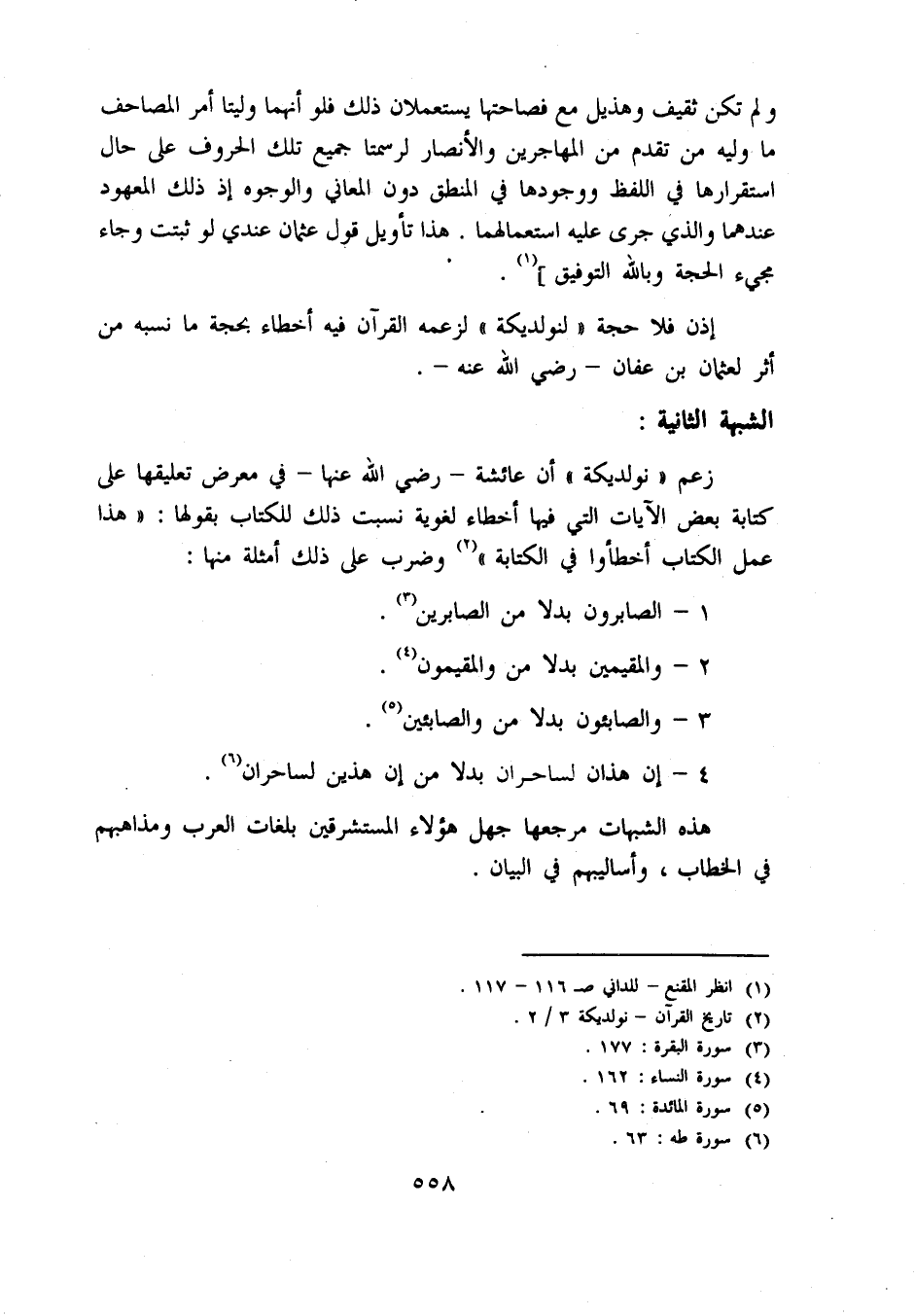 إذن فلا حجة «لنولديكة» لزعمه القرآن فيه أخطاء بحجة ما نسبه من أثر لعثمان بن عفان - رضي اللّه عنه -.