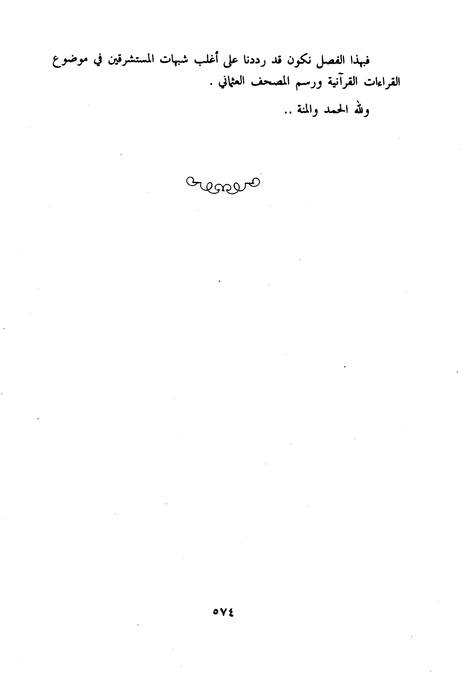 فبهذا الفصل نكون قد رددنا على أغلب شبهات المستشرقين في موضوع القراءات القرآنية ورسم المصحف العثماني.