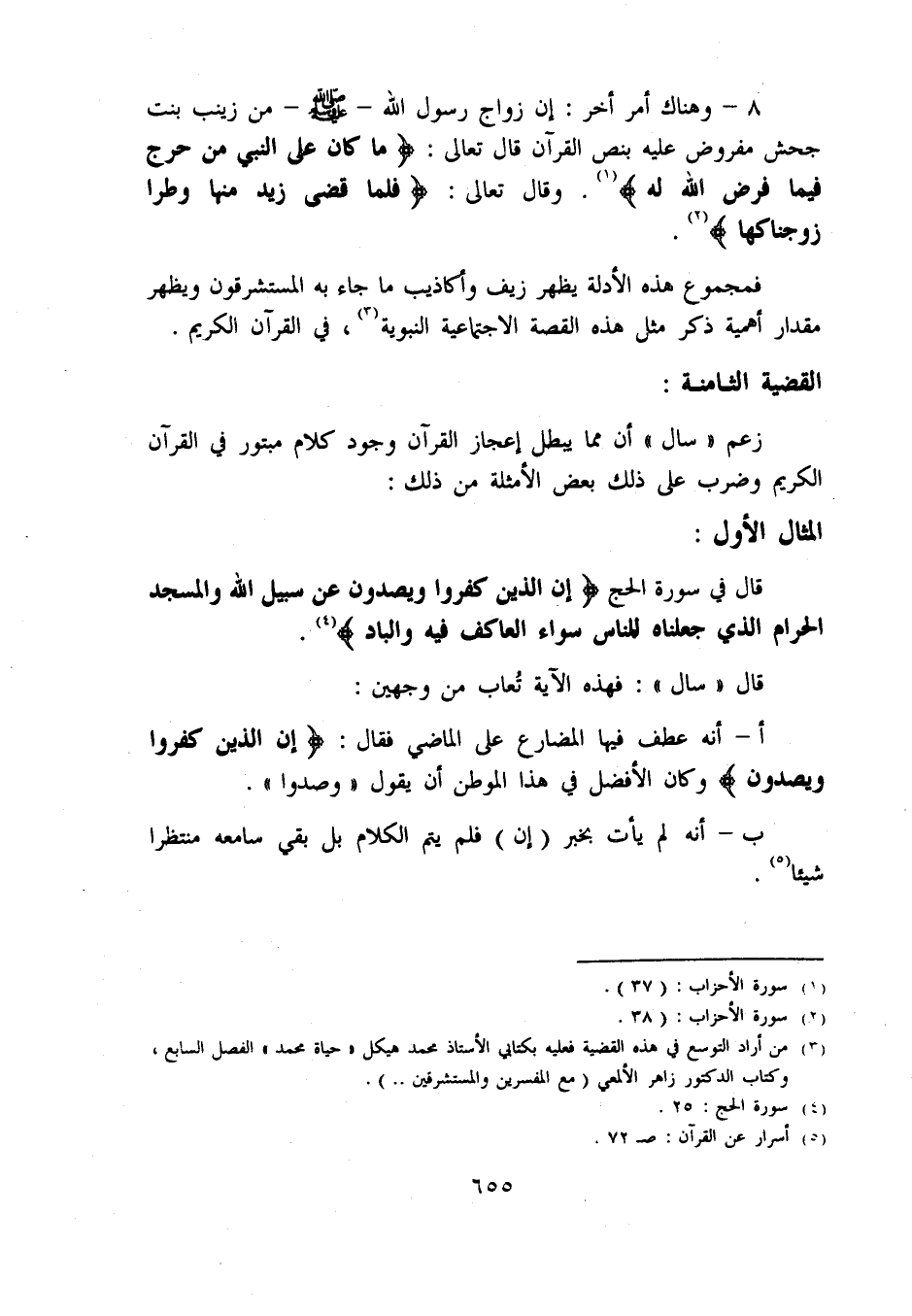(3) من أراد التوسع في هذه القضية فعليه بكتابي الأستاذ محمد هيكل «حياة محمد» الفصل السابع، وكتاب الدكتور زاهر الألمعي (مع المفسرين والمستشرقين .. ).