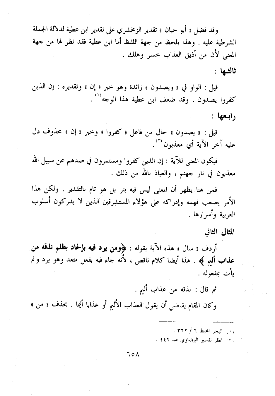 فمن هنا يظهر أن المعنى ليس فيه بتر بل هو تام بالتقدير. ولكن هذا الأمر يصعب فهمه وإدراكه على هؤلاء المستشرقين الذين لا يدركون أسلوب العربية وأسرارها.