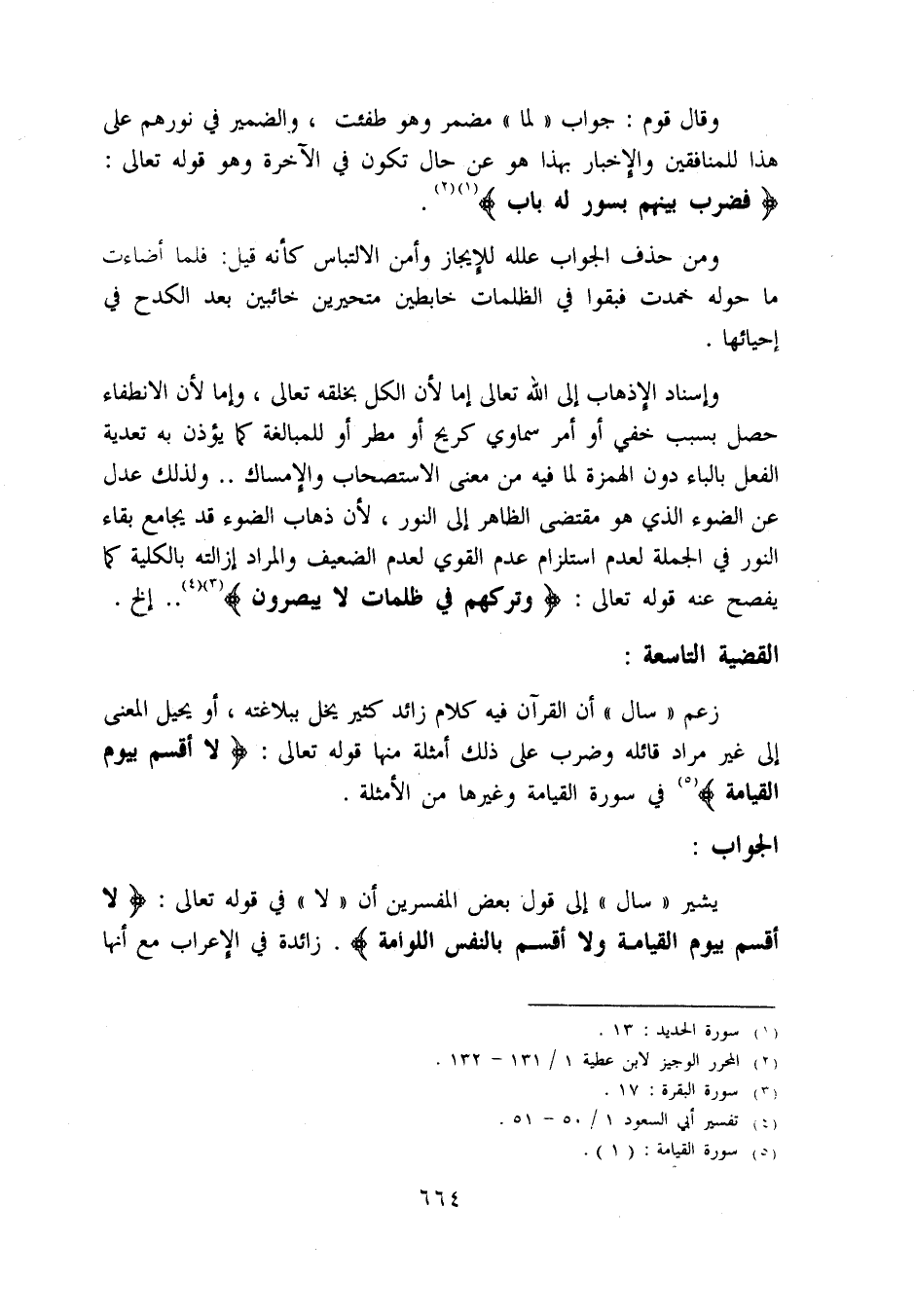 يشير «سال» إلى قول بعض المفسرين أن «لا» في قوله تعالى: لا أُقْسِمُ بِيَوْمِ الْقِيامَةِ ولا أُقْسِمُ بِالنَّفْسِ اللَّوَّامَةِ. زائدة في الإعراب مع أنها