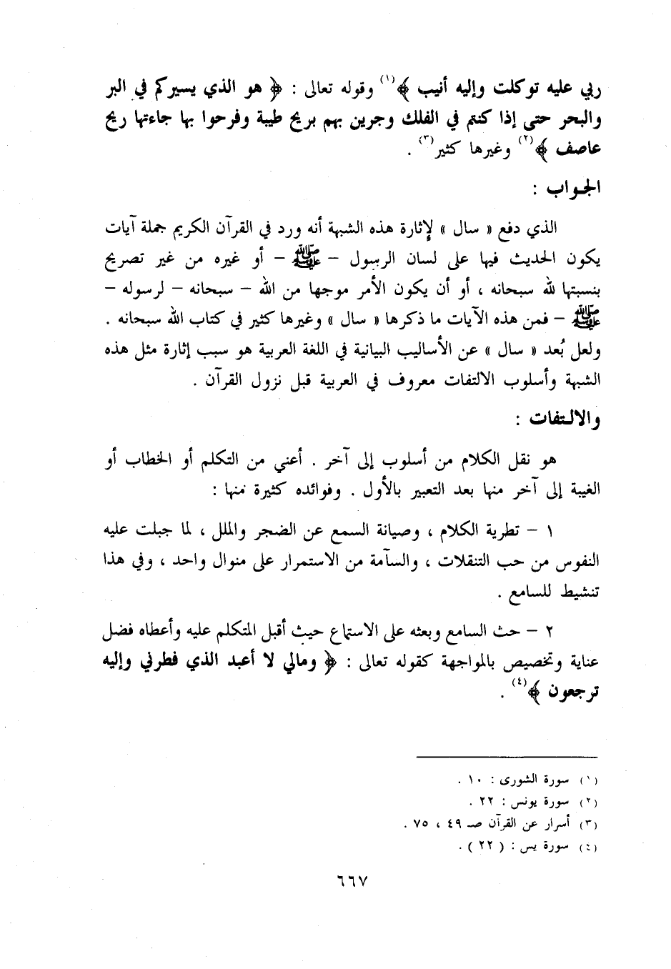 ولعل بعد «سال» عن الأساليب البيانية في اللغة العربية هو سبب إثارة مثل هذه الشبهة وأسلوب الالتفات معروف في العربية قبل نزول القرآن.