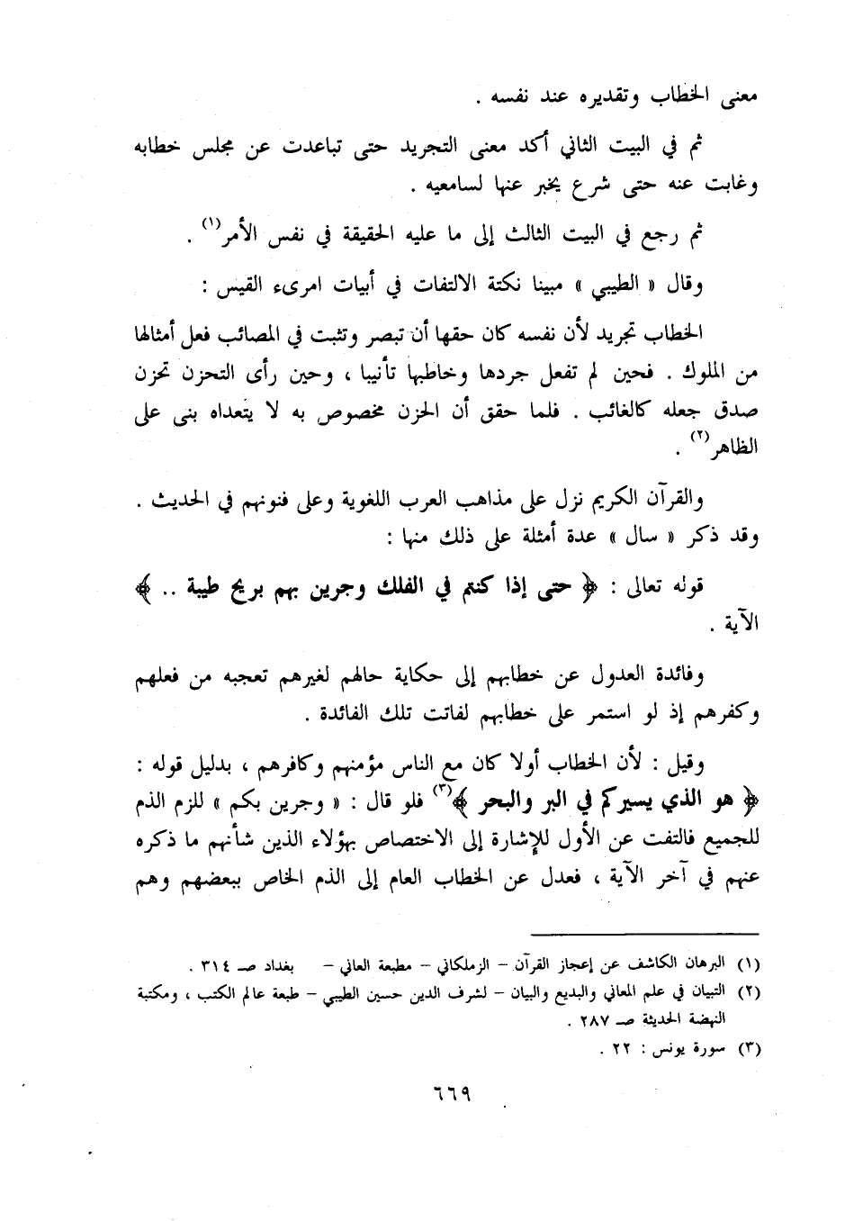 (2) التبيان في علم المعاني والبديع والبيان - لشرف الدين حسين الطيبي - طبعة عالم الكتب، ومكتبة النهضة الحديثة ص 287.