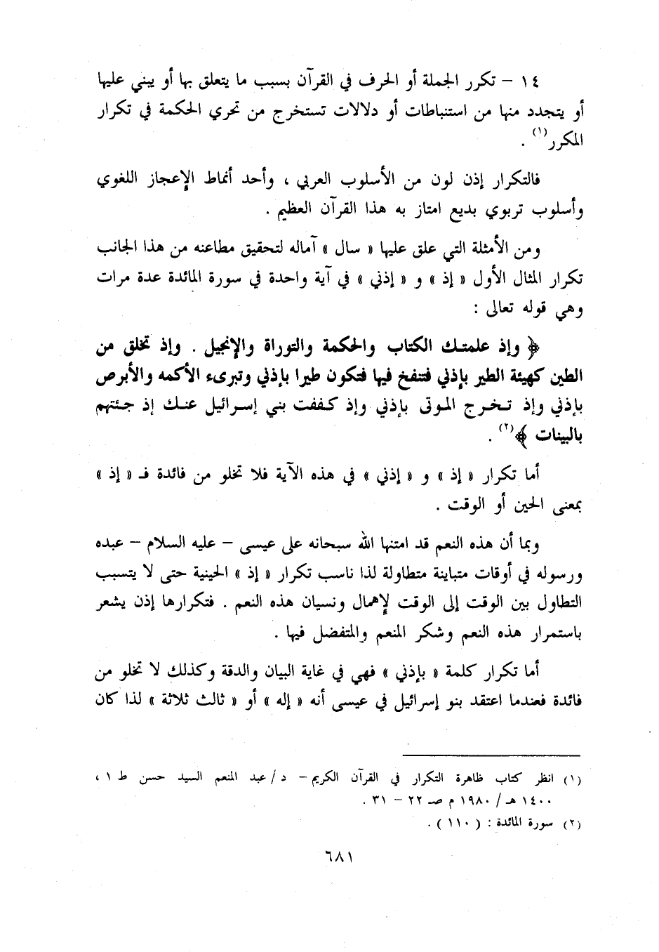 (1) انظر كتاب ظاهرة التكرار في القرآن الكريم - د/ عبد المنعم السيد حسن ط 1، 1400 ه/ 1980 م ص 22 - 31.